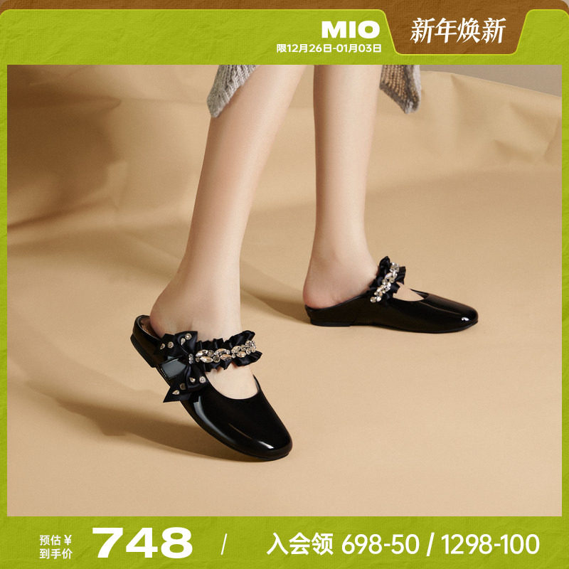 [枪枪同款]MIO米奥夏季厚底坡跟凉鞋蝴蝶结包头拖勃肯拖女鞋