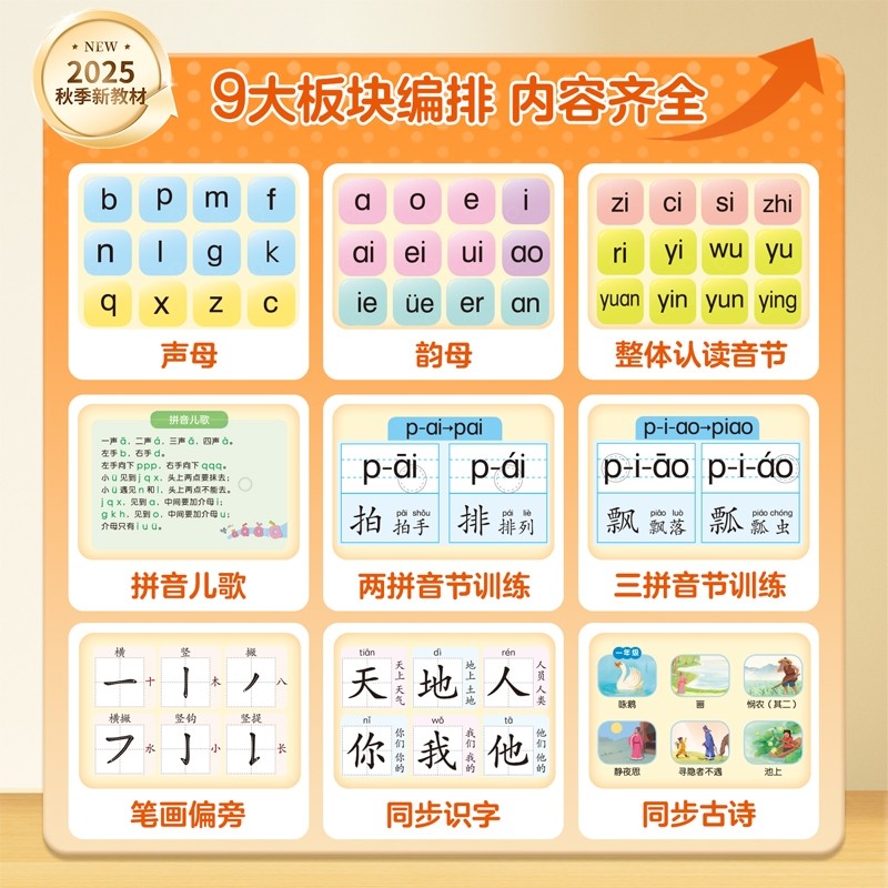 新版汉语拼音自然拼读训练点读发声书幼小衔接人教版 一年级早教启蒙新教材同步识字书幼儿认字古诗幼升小专项训练神器 有声学习机
