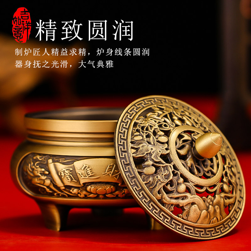 黄铜香炉家用室内盘香炉仿古三足香薰炉茶道檀香炉蚊香盘托熏香炉