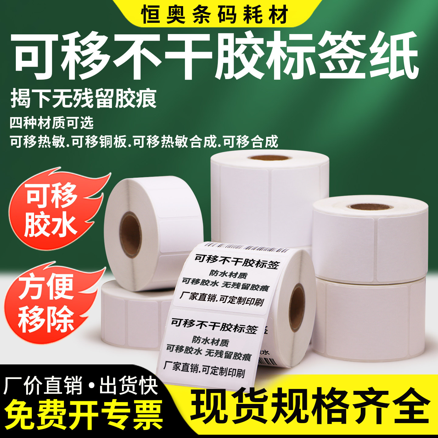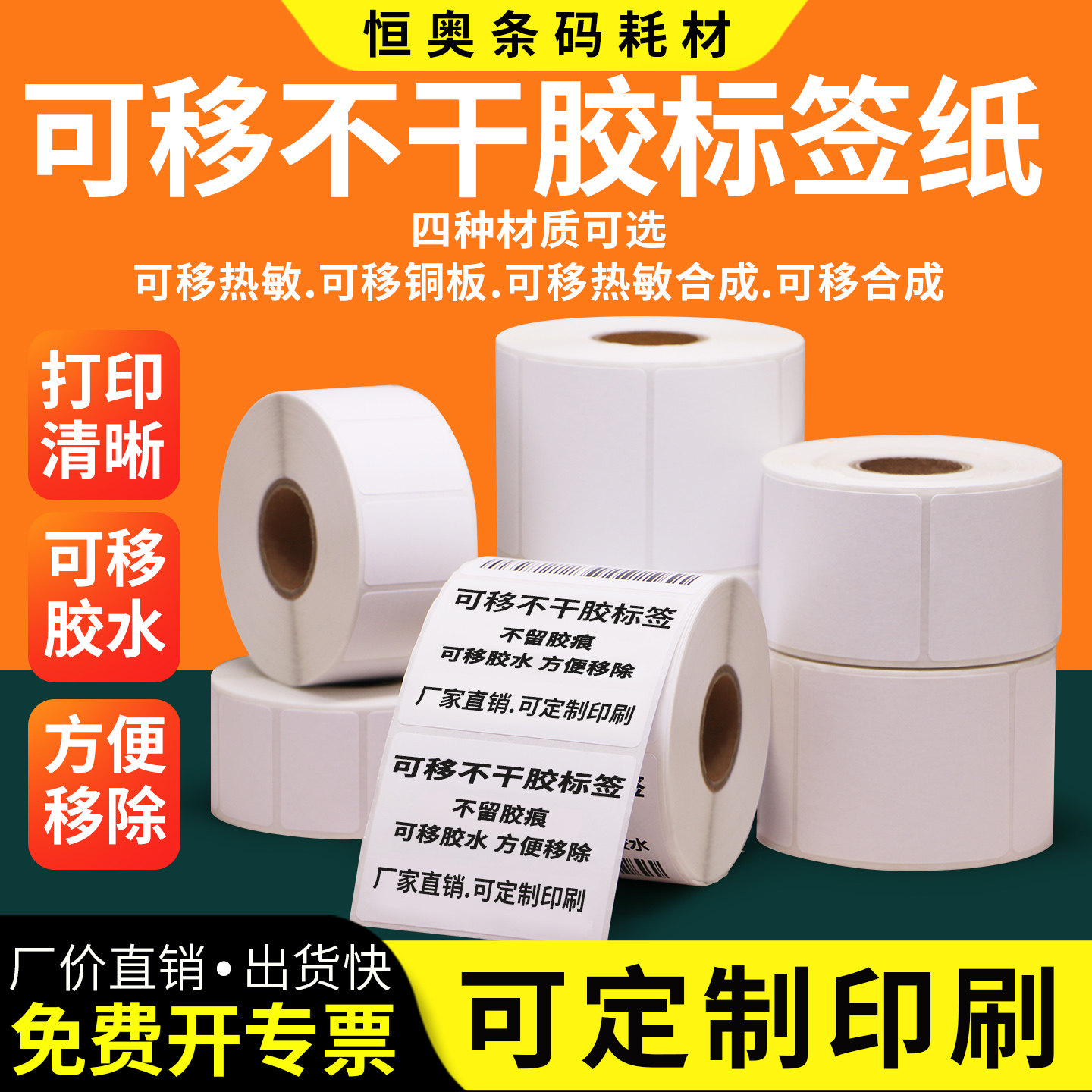 可移合成纸热敏纸不干胶卷装标签家具玻璃陶瓷食品易撕取可移除不留胶空白贴纸不干胶条形码条码打印纸定制