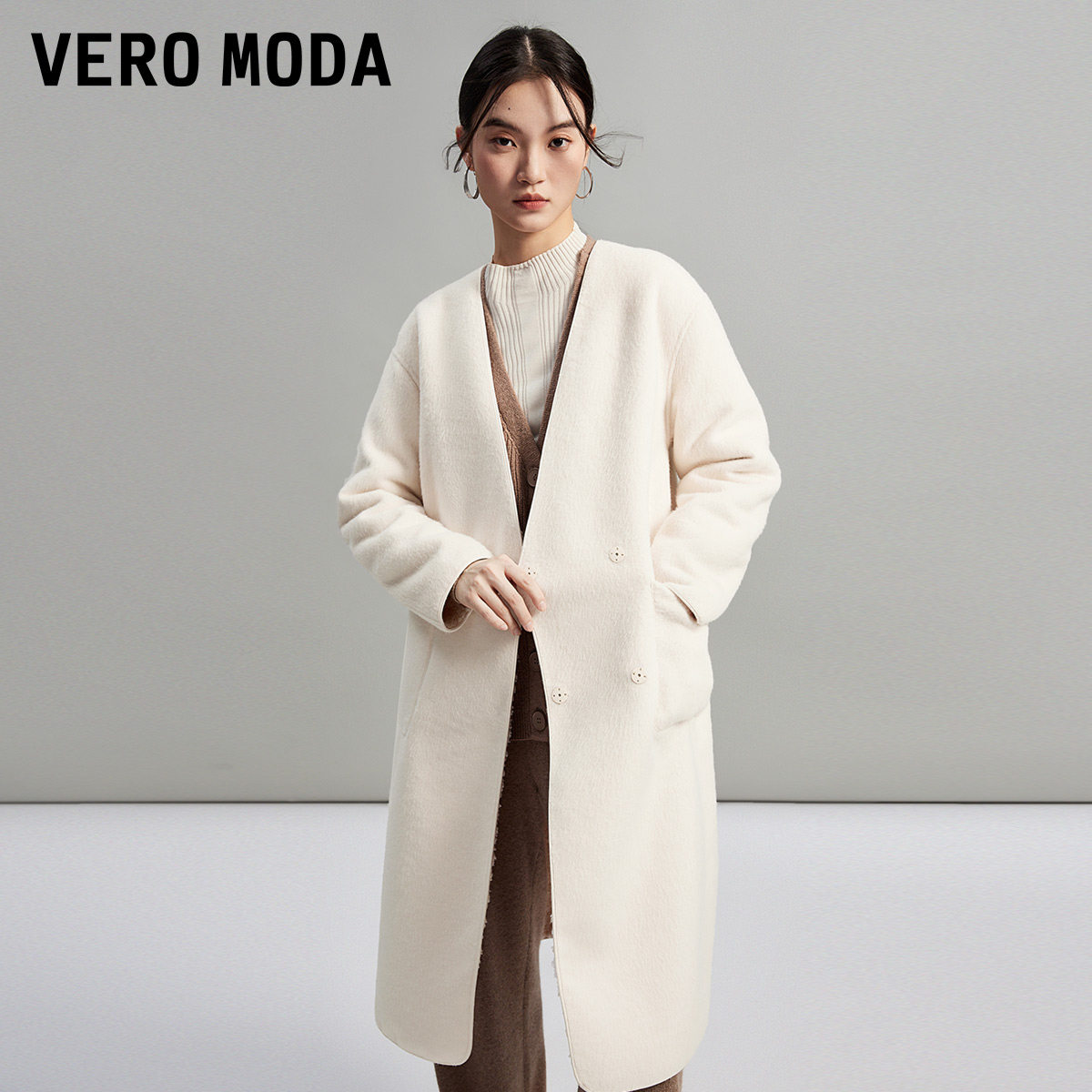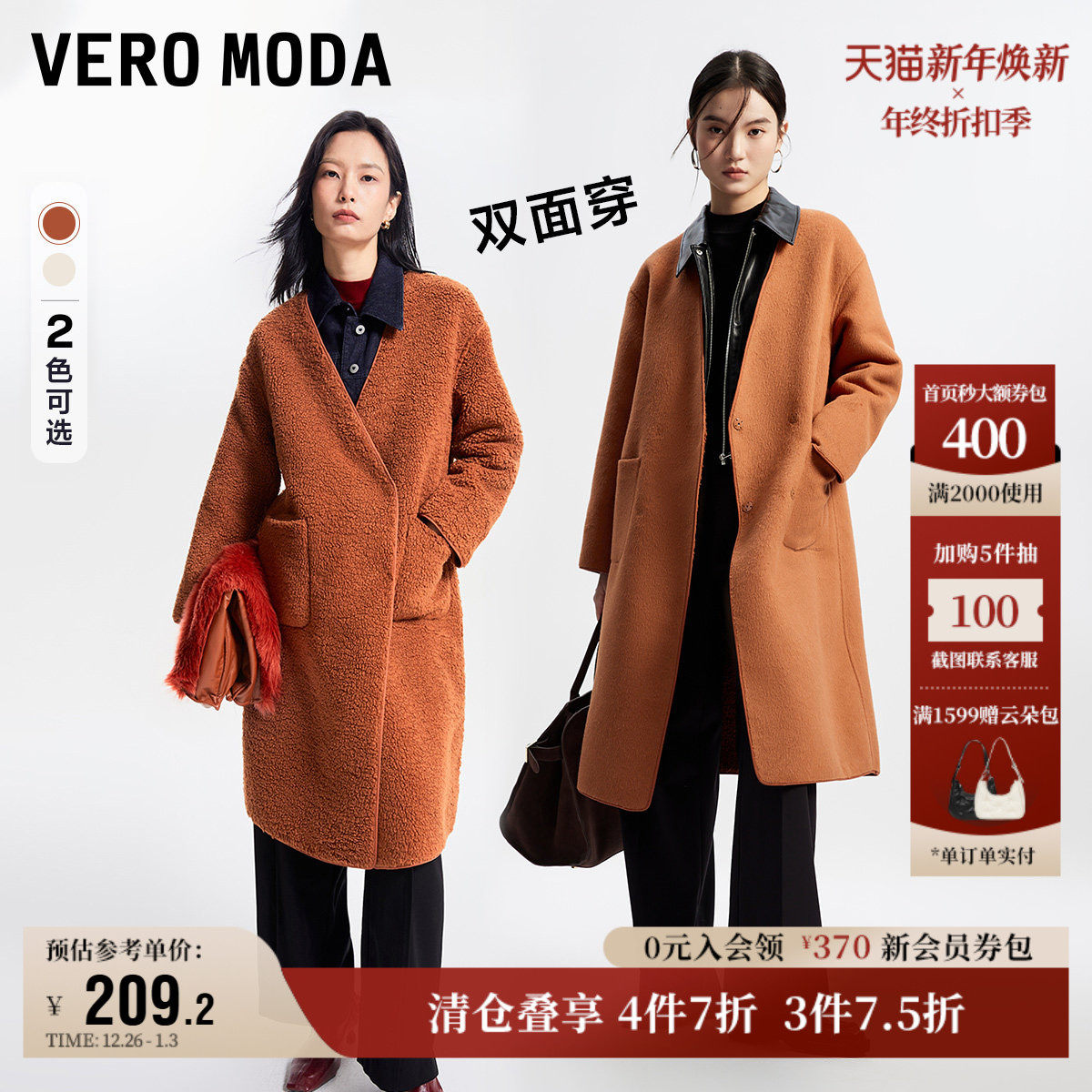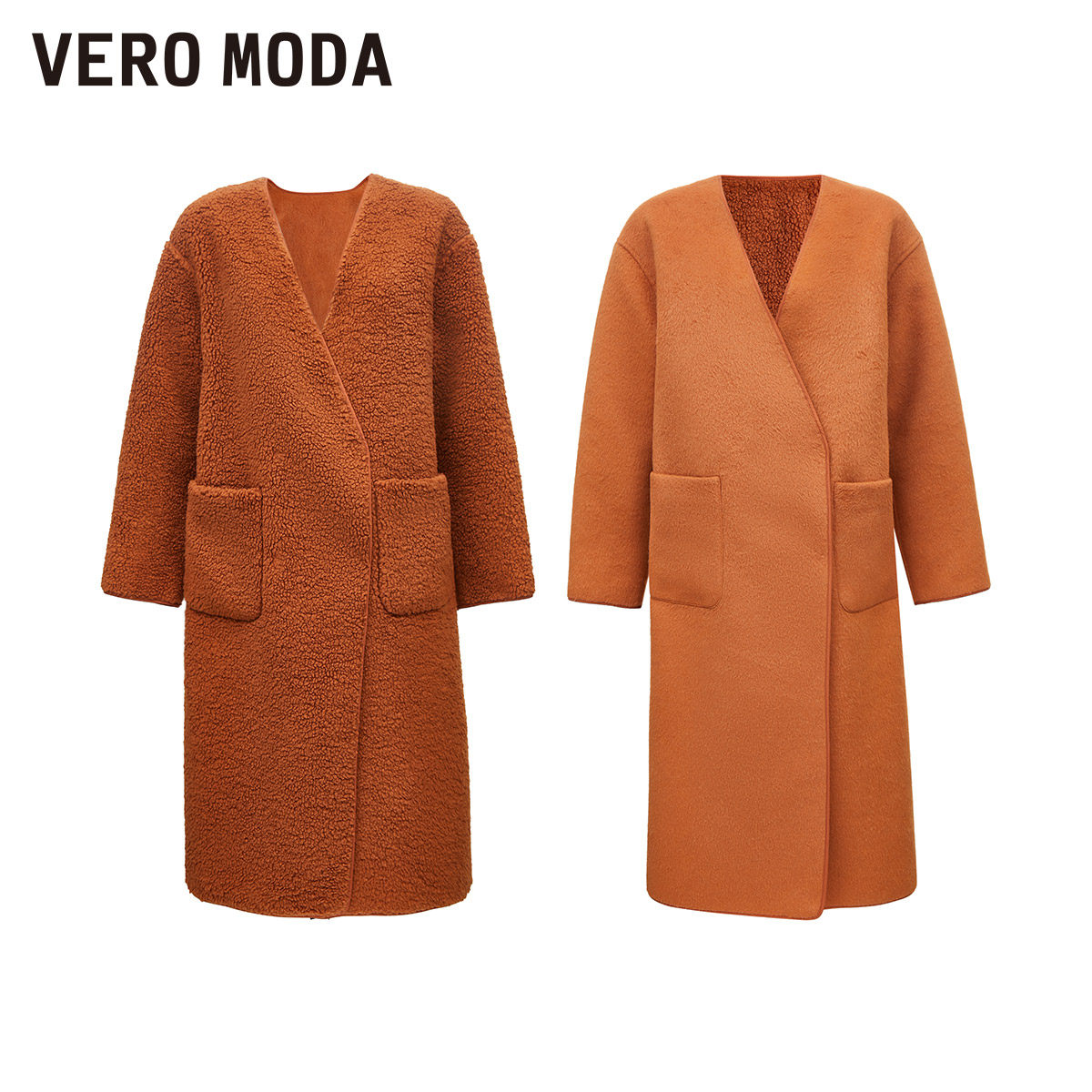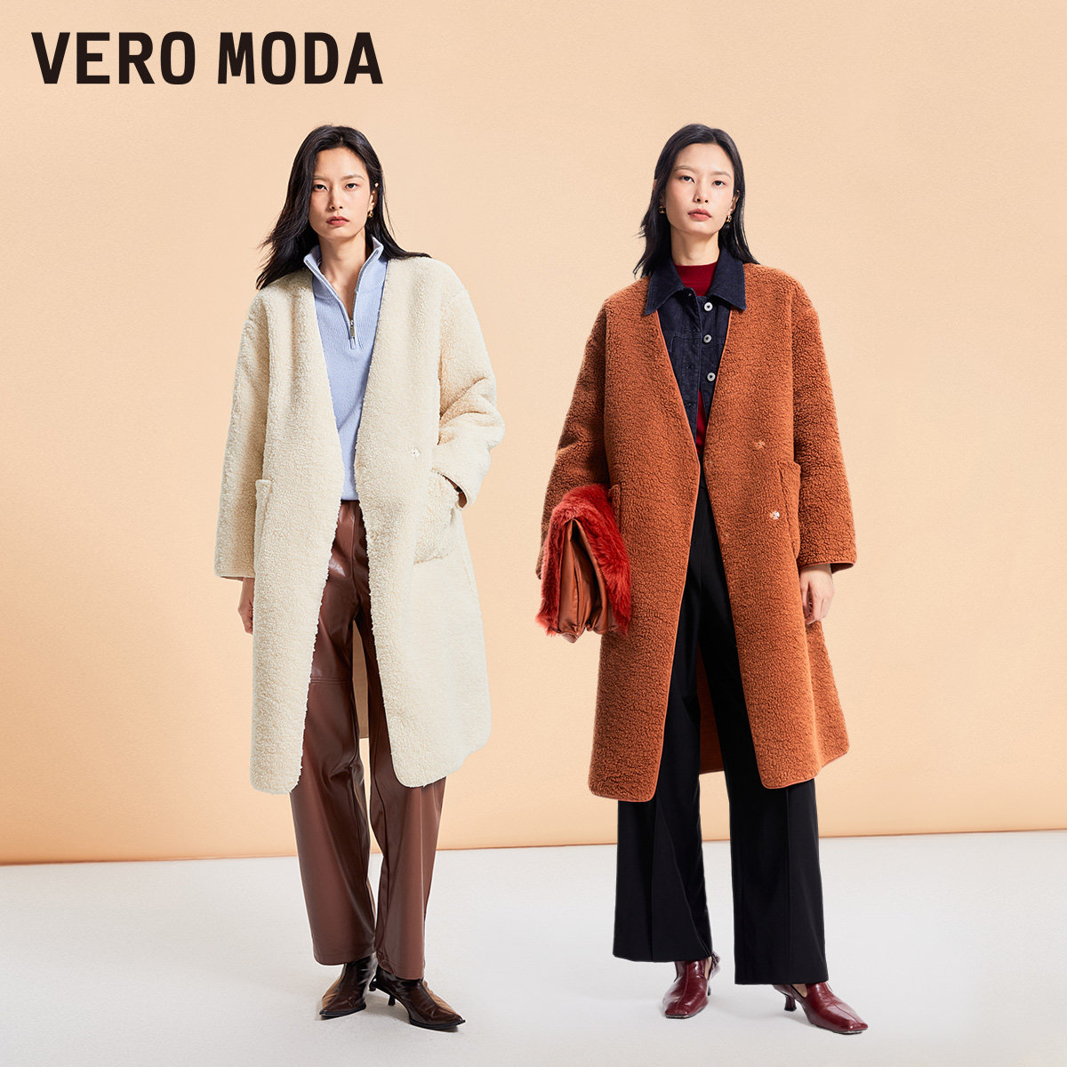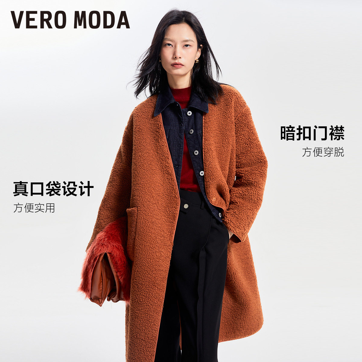 Vero Moda奥莱厚外套女秋冬清仓V领长款宽松绒感厚实气质大衣流行