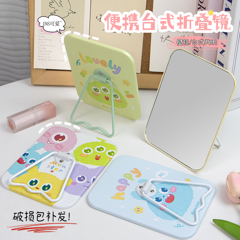 化妆镜子壁挂折叠镜可爱桌面立式梳妆镜宿舍可立可挂台镜宿舍镜子