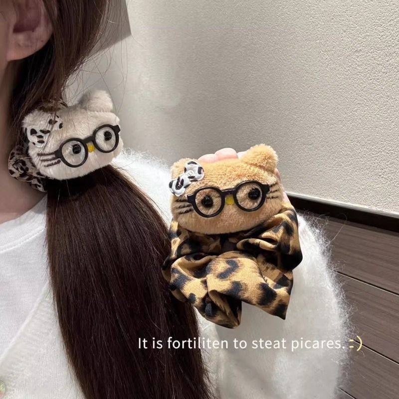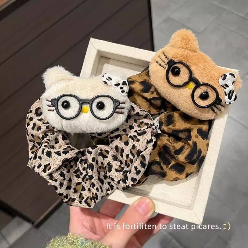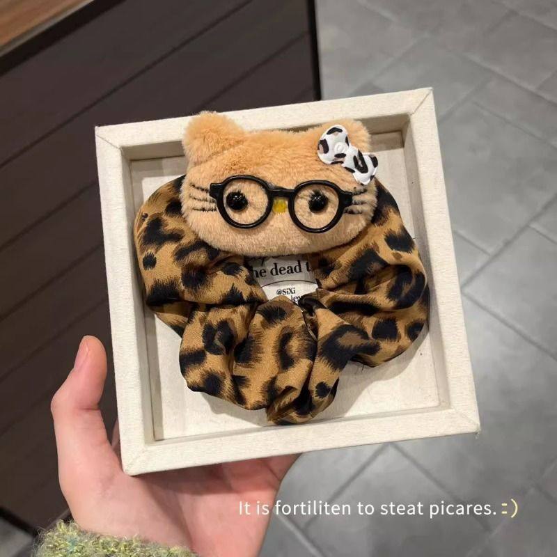 ins辣妹眼镜kt豹纹系发圈爆款百搭波点秋冬慵懒风小众发饰大肠圈