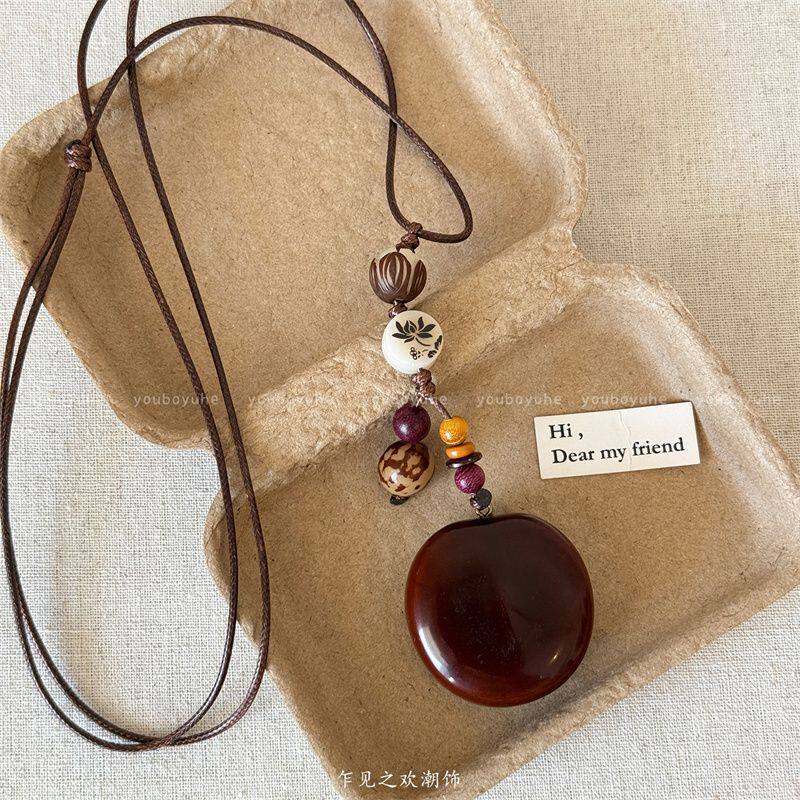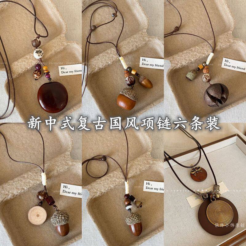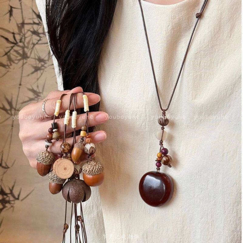 新中式国风长款橡果吊坠项链女复古民族风禅意设计毛衣链颈链配饰