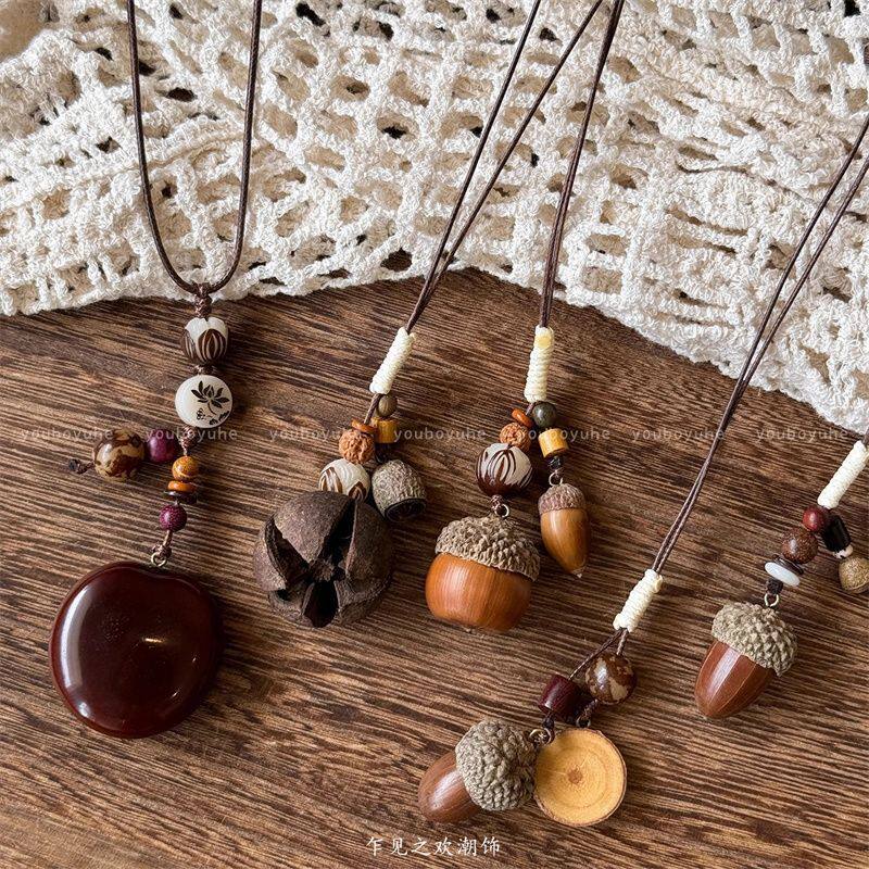 现货橡果森系植物干果毛衣链长款风配饰男女手工编织棉麻服饰项链