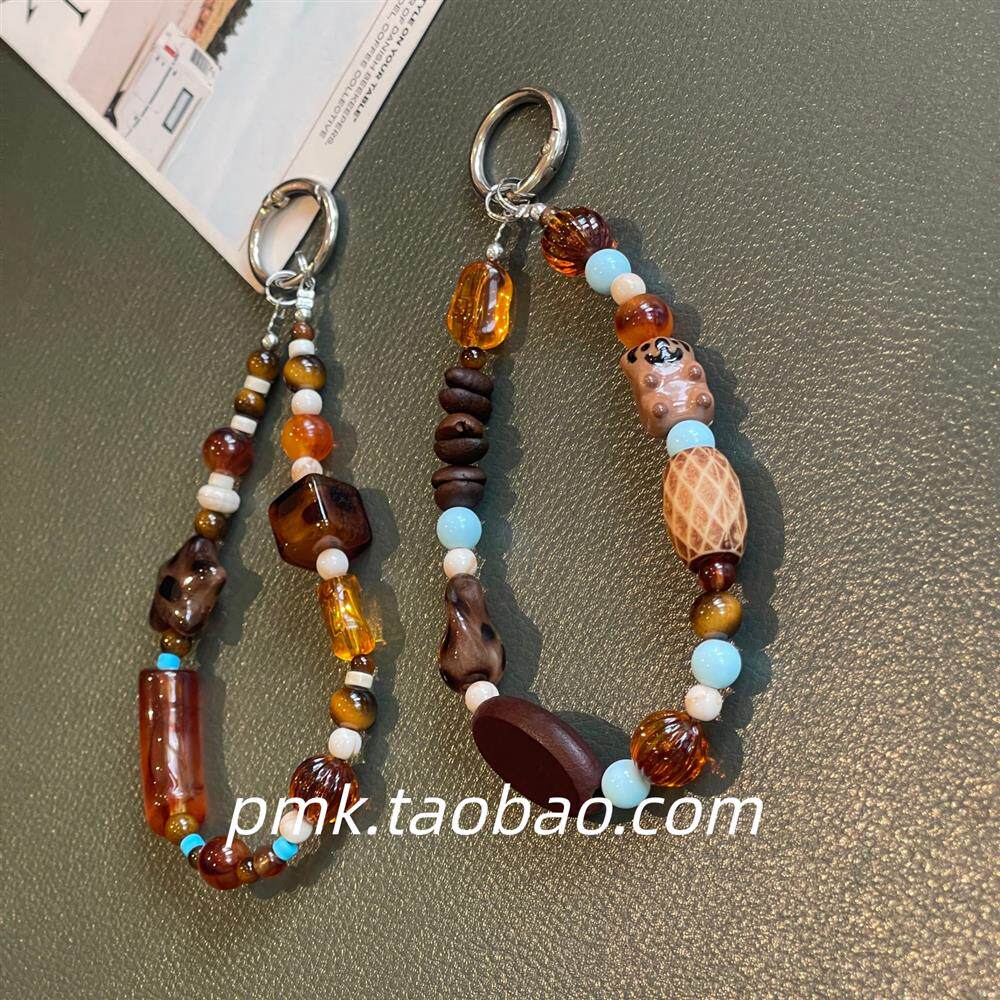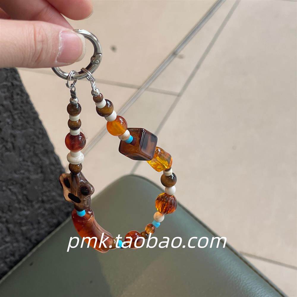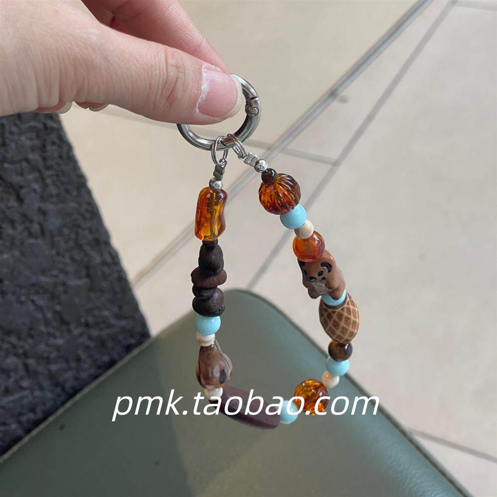 中式复古风卡通可爱小熊小众串珠链条包包挂饰钥匙扣壳挂链女百搭