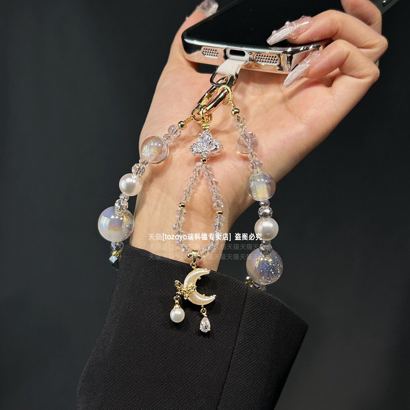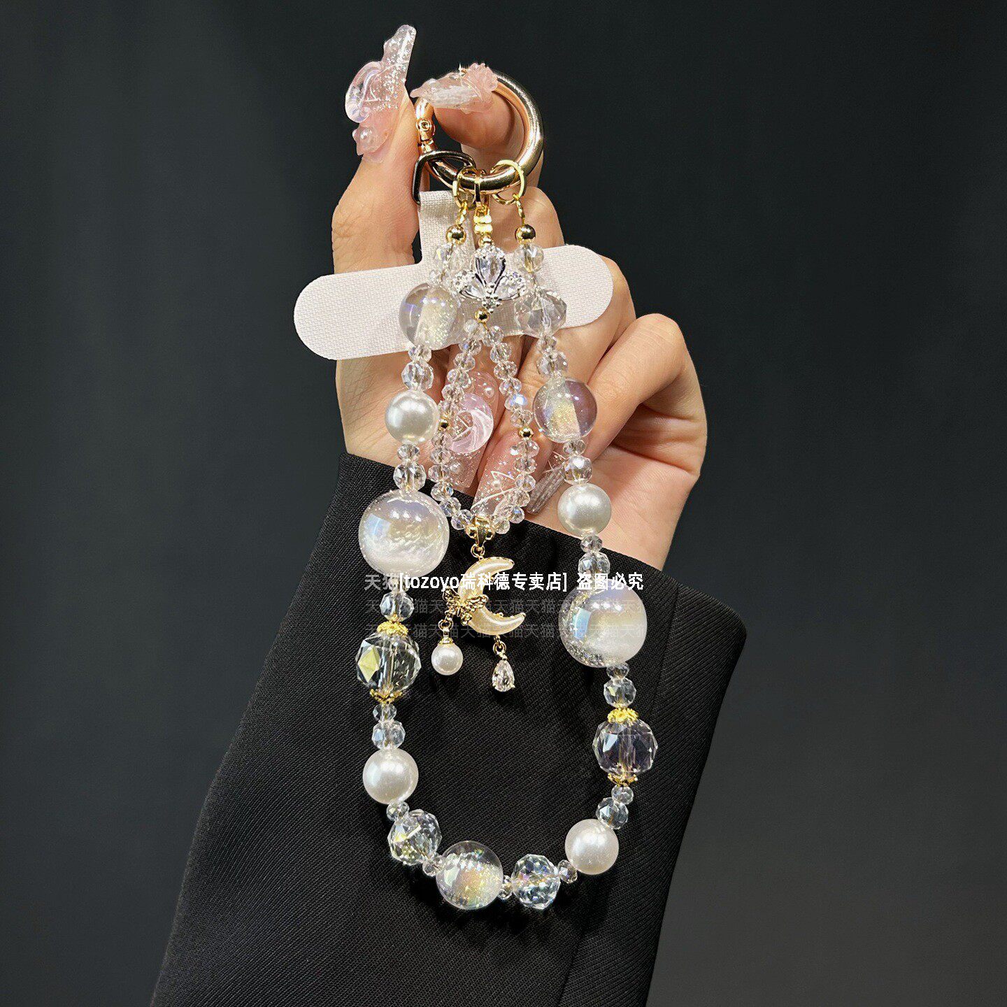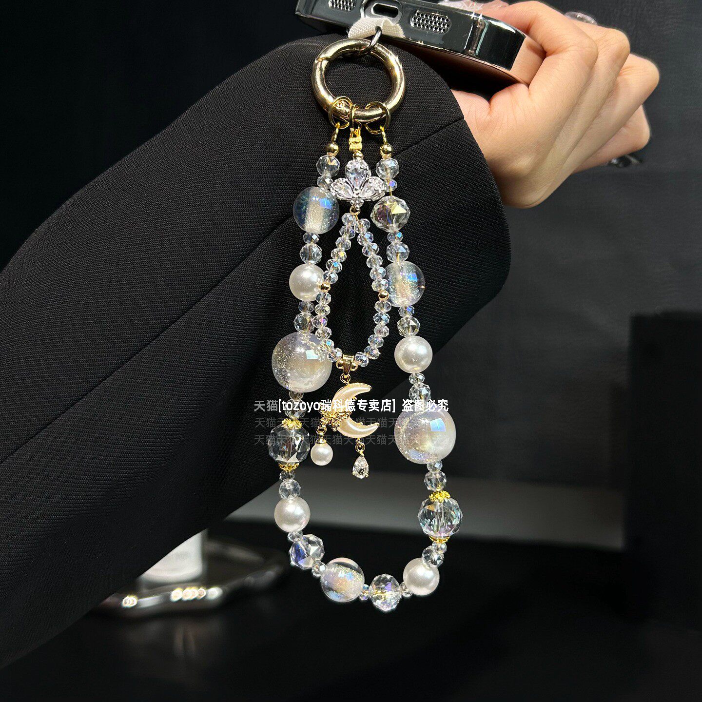 白月光手机链简约高级感气质挂链手腕款精致手链冰透水晶串珠链条小众爆款手提链女挂件仙气包包钥匙扣挂饰壳