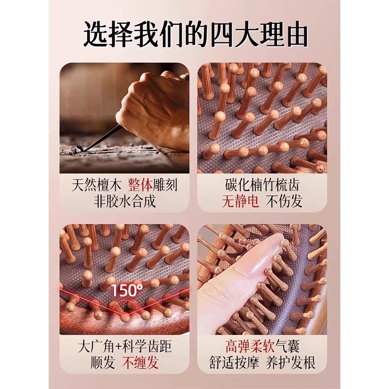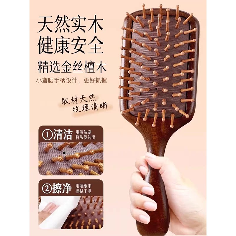 檀木气垫梳女士家用顺发头部头皮经络按摩梳疏通便携气囊梳子蓬松