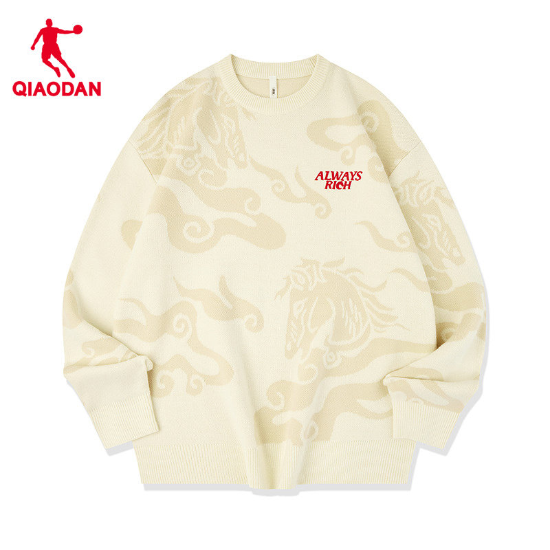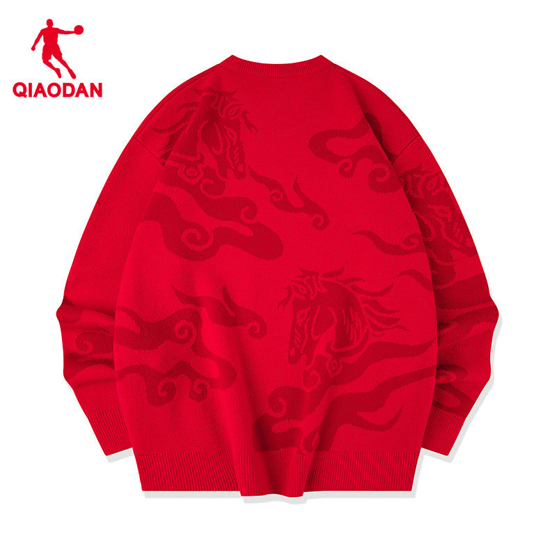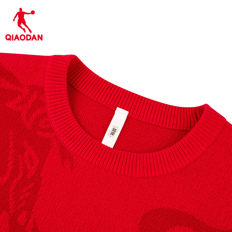 乔丹红色毛衣男士春季新款商场同款马上有钱满印新年本命年毛衫