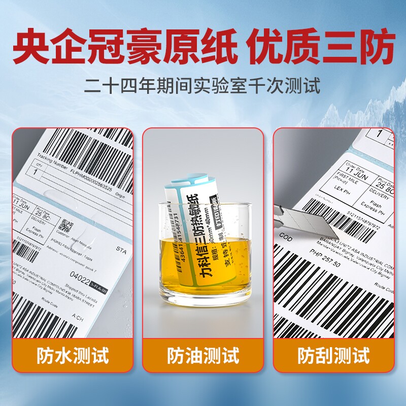 三防热敏标签纸热敏纸条码纸不干胶打印纸三防贴纸50*30 20 40 60 70 80 100*100mm物流E邮宝面单奶茶店吊牌