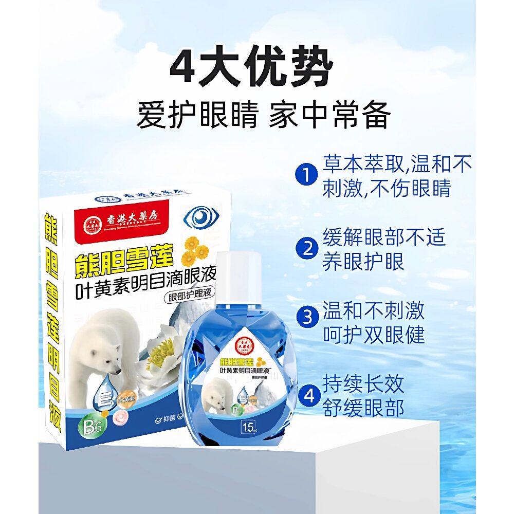 香港大药房熊胆雪莲叶黄素明目滴眼液缓解眼疲劳眼部护理液头部