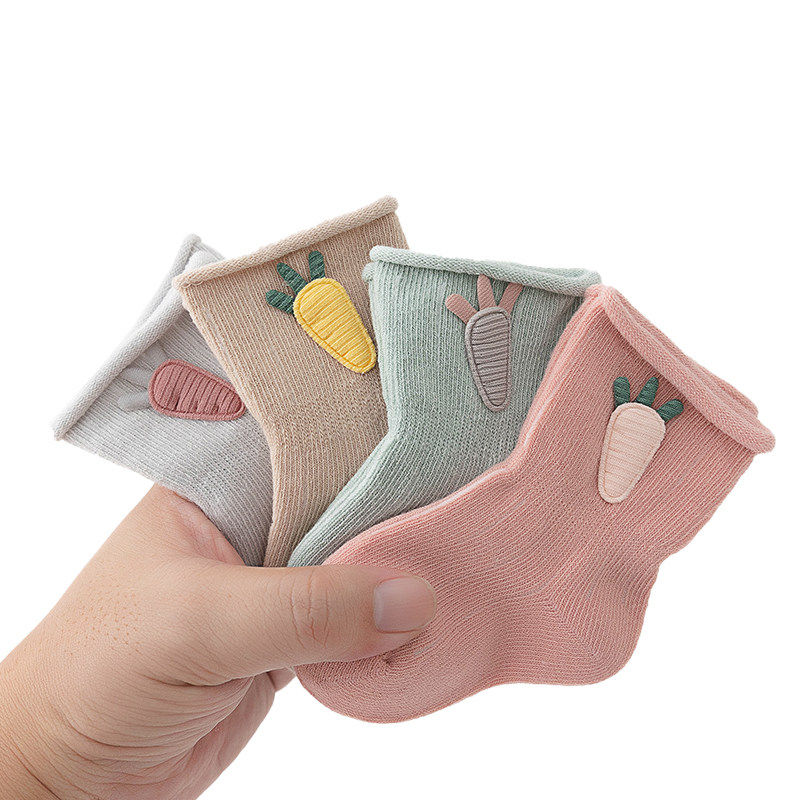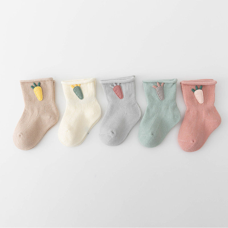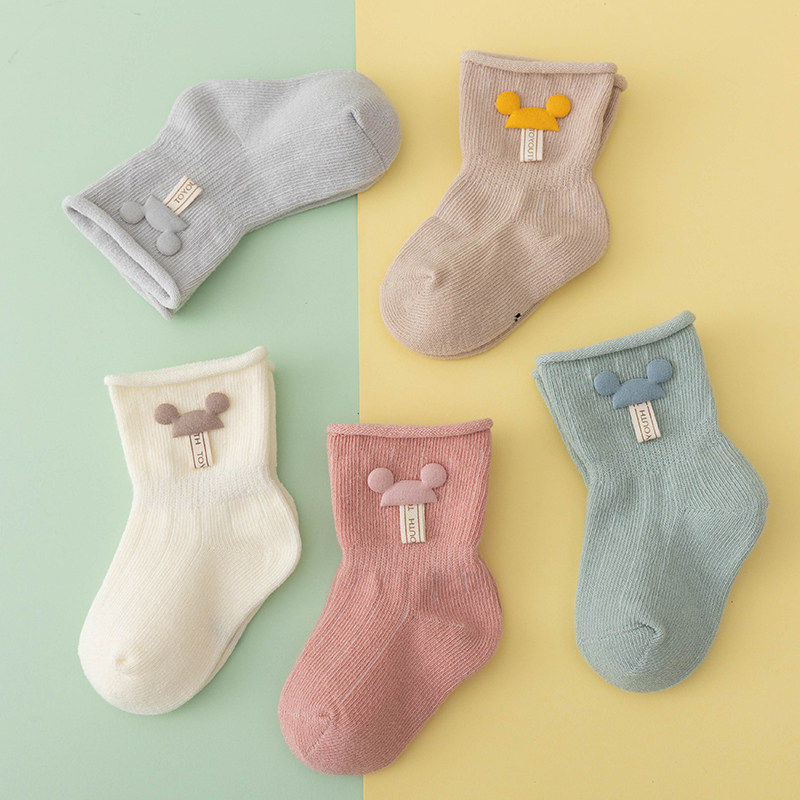 婴儿袜子0一3月春秋纯色无骨棉袜新生儿男女宝宝中筒袜秋冬不勒腿