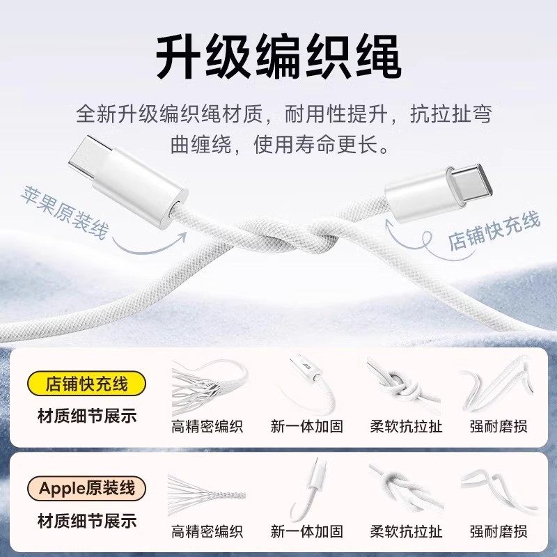 适用苹果充电线iPhone17ProMax/16/15plus/Air数据线双Tpye-c车载编织PD快充iPad平板电脑USB-C通用快充线
