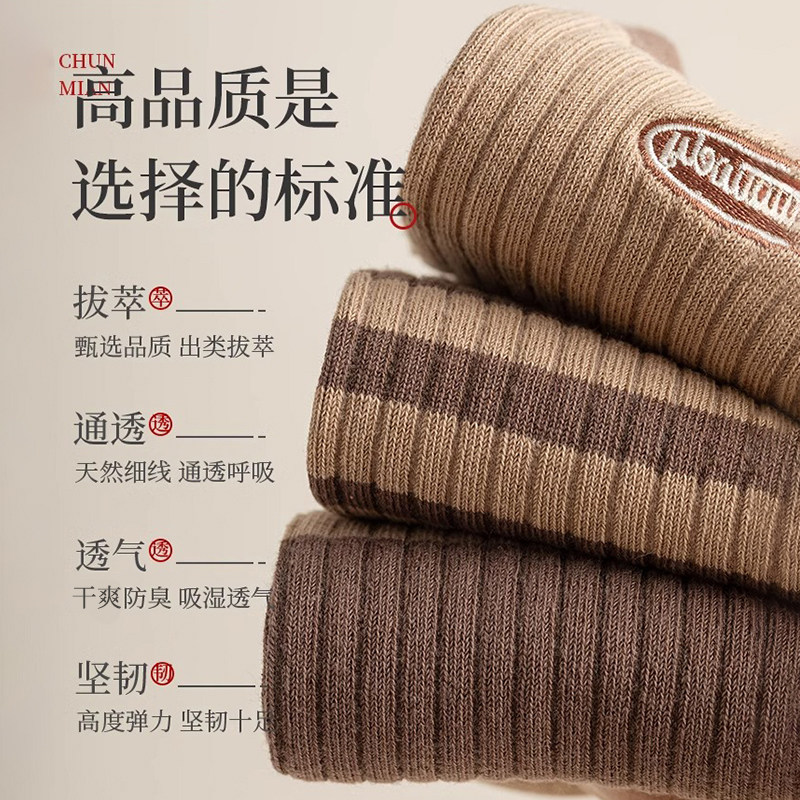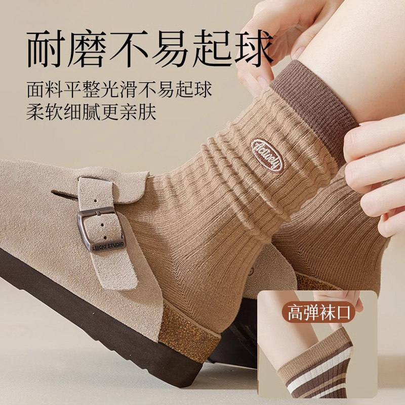 美拉德袜子女春秋冬季条纹中筒堆堆袜2025新款爆款咖色女士长筒袜