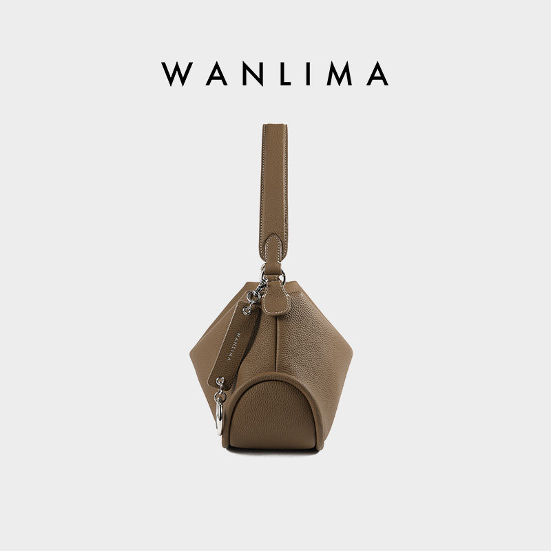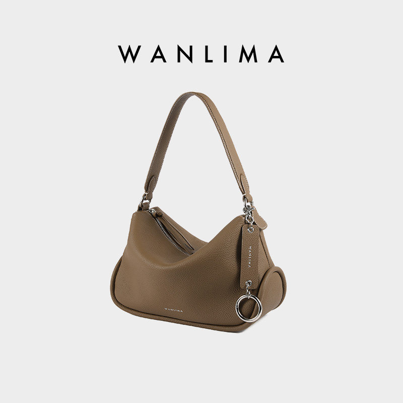 万里马新中式枕头包女腋下包软牛皮单肩斜挎头层牛皮通勤包小方包