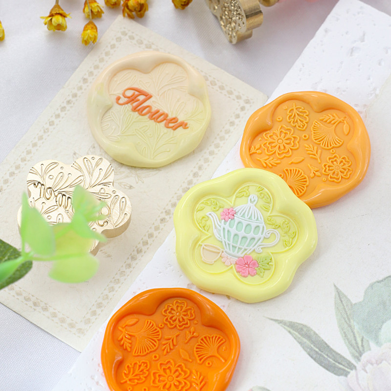 花形铜头火漆印章花卉铜头植物茶杯猫咪乌龟飞鹤火漆蜡装饰手工
