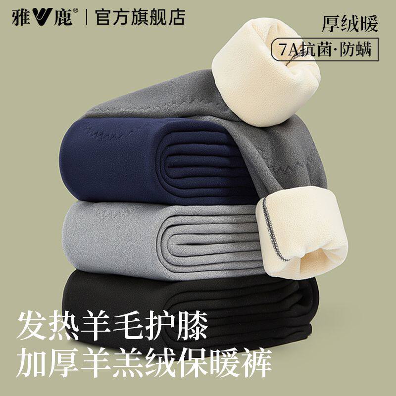 雅鹿保暖裤男士加厚加绒打底线裤男款冬季棉裤绒德裤羊毛秋裤护膝