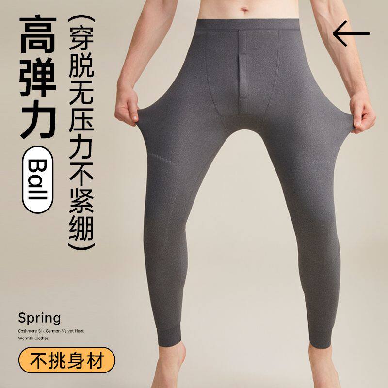 羊毛蚕丝男士秋裤发热加厚加绒德保暖裤无痕薄款衬裤打底线裤冬季