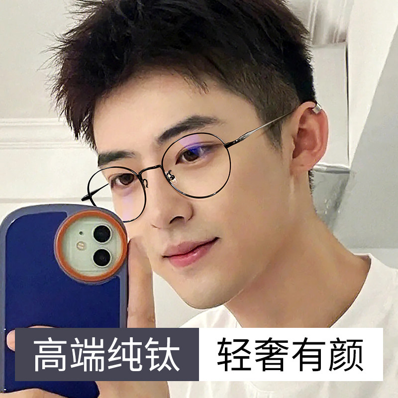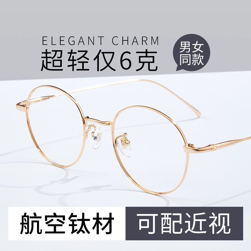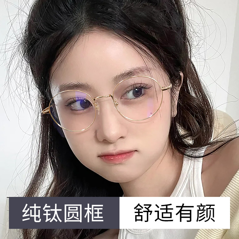 网上配镜圆框近视眼镜女可配度数镜片超轻纯钛镜框素颜眼睛框镜架
