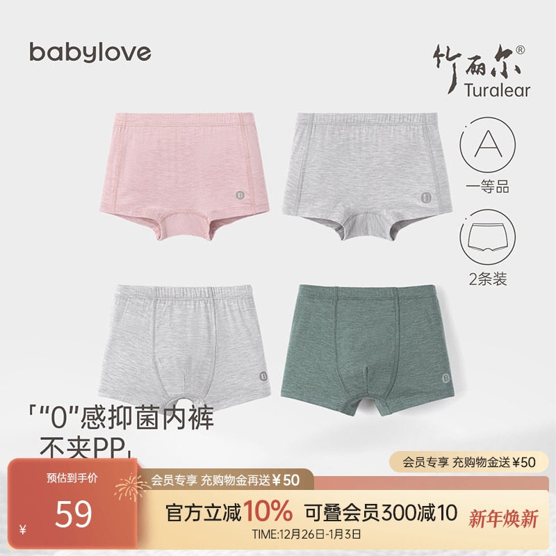 babylove宝宝内裤四季男女童平角裤竹丽尔抑菌儿童四角短裤2条装
