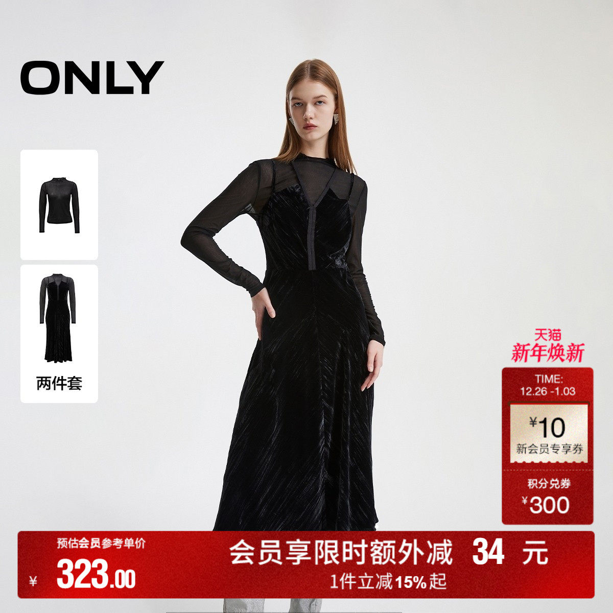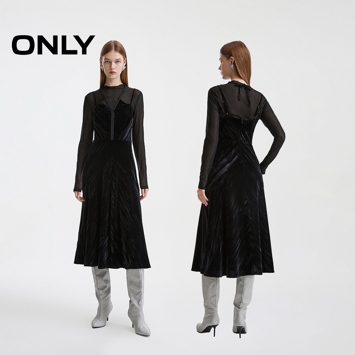 【ONLY奥莱】秋冬时尚优雅气质修身长裙套装连衣裙女
