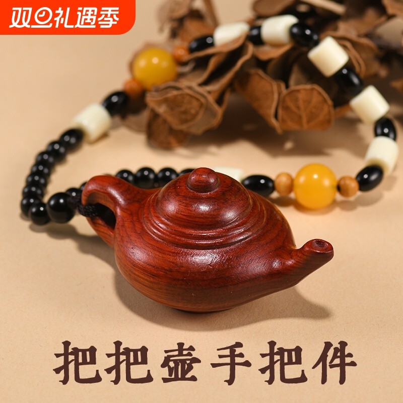 把把壶手把件把把胡打麻将神器紫檀木小茶壶摆件钥匙扣迷你挂件L