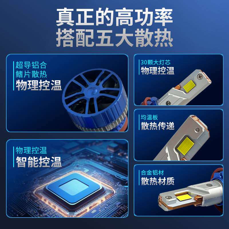 适用五铜管led汽车灯泡改装专用大功率前大灯快启高亮度聚光车灯