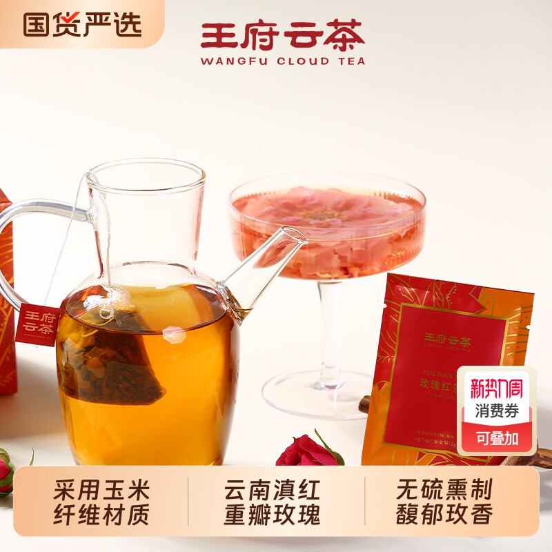 王府云茶玫瑰花茶滇红袋泡茶叶浓香型酒店商用调味独立包装整盒