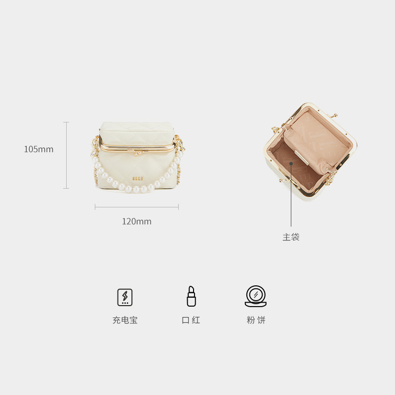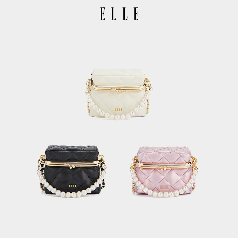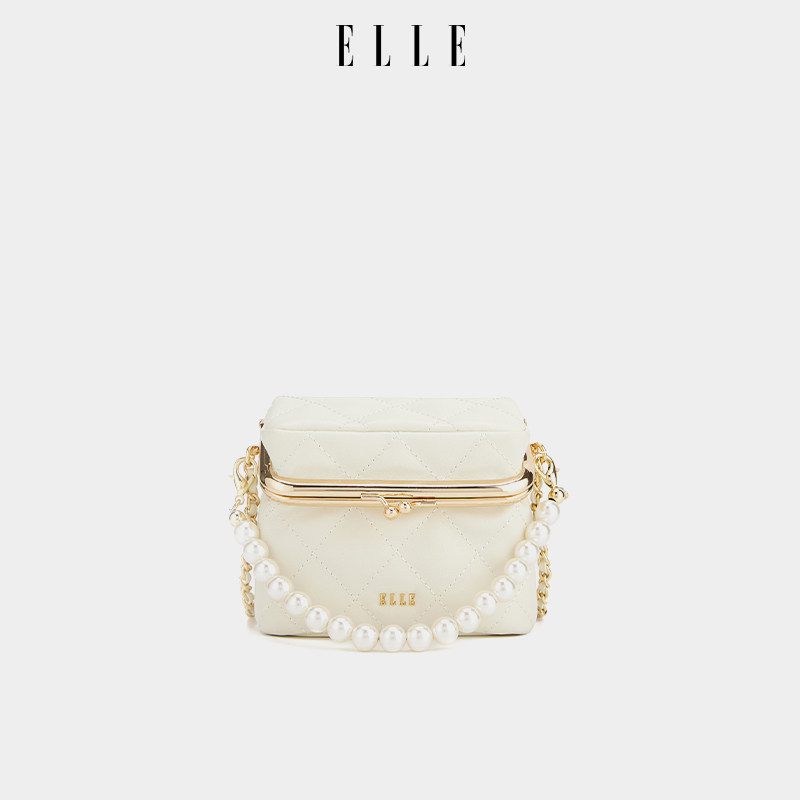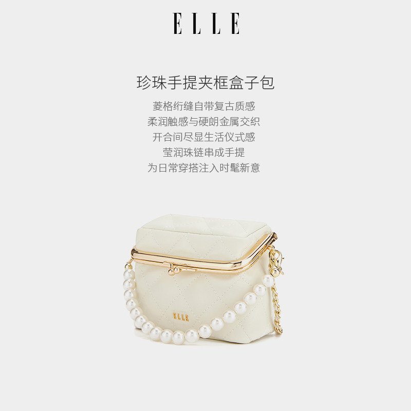ELLE女包新款包包珍珠手提盒子包斜挎包高级感白色精致百搭链条包