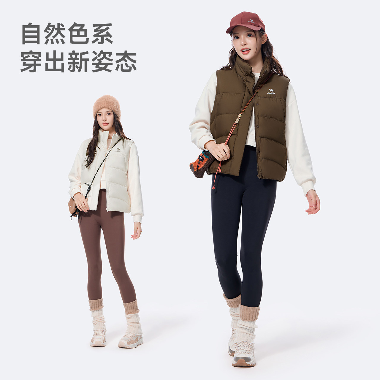 骆驼女装羽绒服马甲2025秋冬白色轻薄短款外穿保暖加厚背心外套女