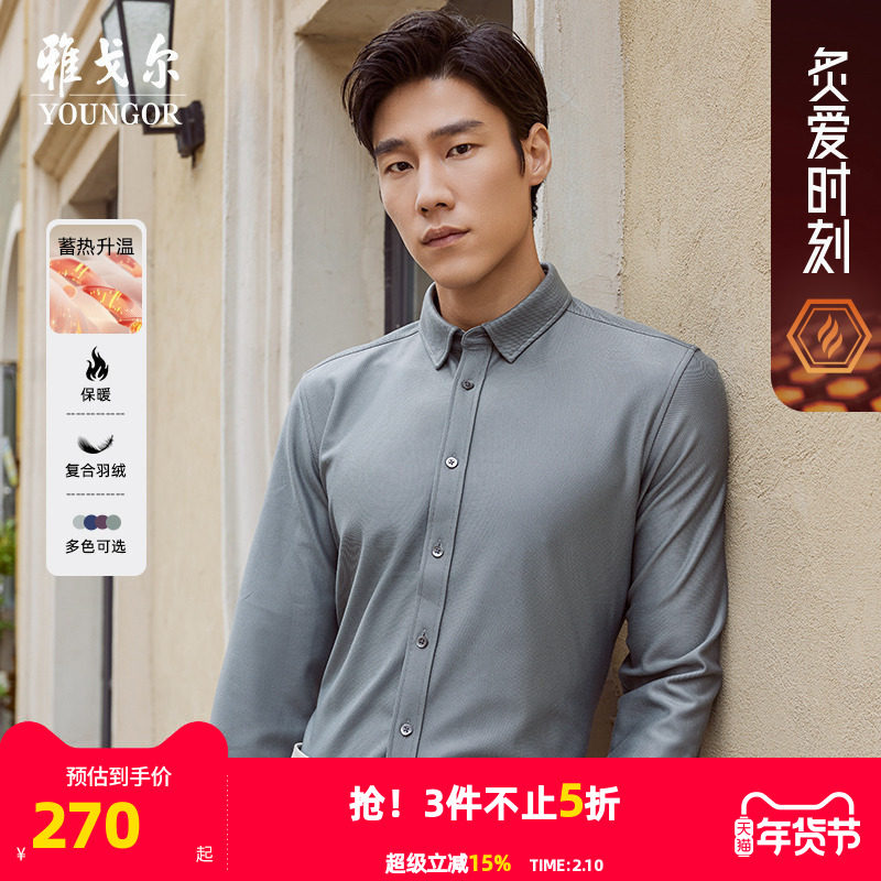 【羽绒衬衫】雅戈尔冬季加厚保暖抗寒抗菌中年爸爸加绒衬衫衣男