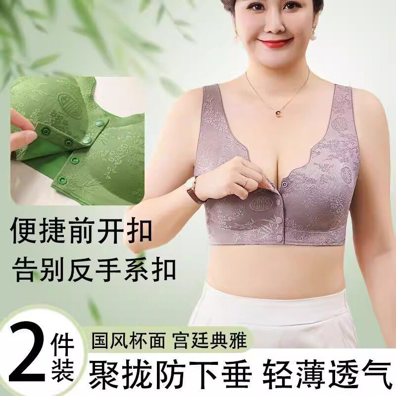 前排扣文胸舒适透气贴肤隐形塑身妈妈文胸后背无钢圈聚拢透气内衣