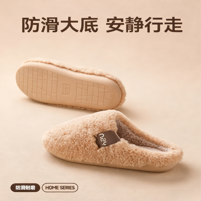轻臣冬季棉拖鞋女款2026新款秋冬防滑厚底保暖情侣毛绒毛毛拖鞋