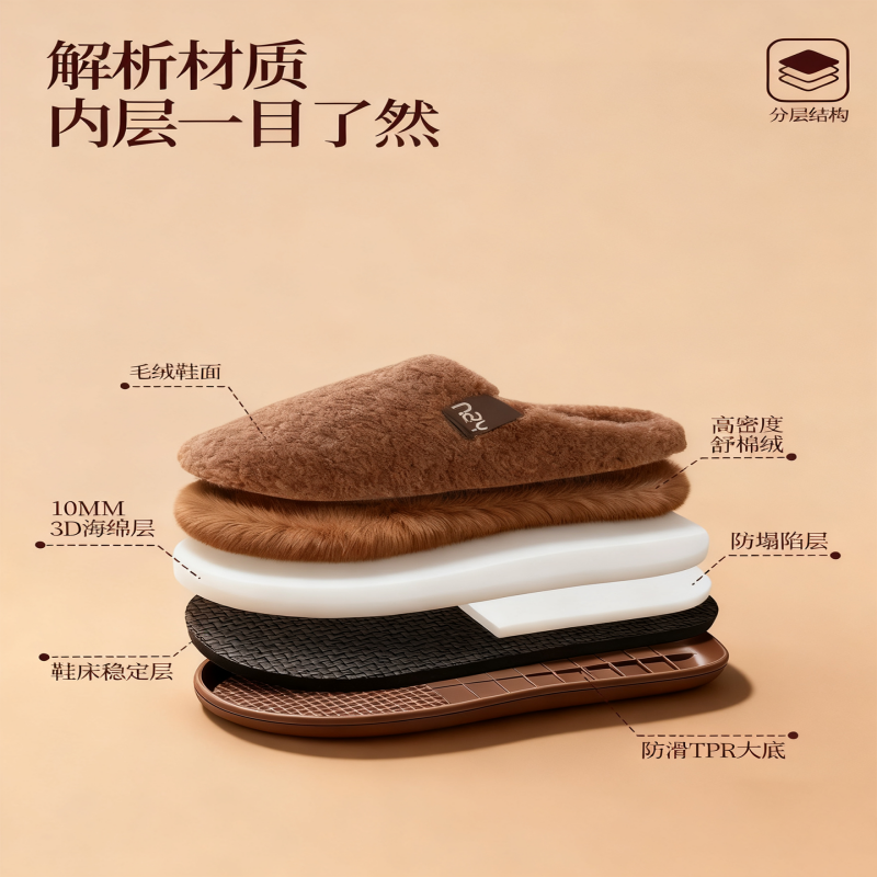 红豆踩屎感棉拖鞋女士秋冬季室内家居2025新款毛绒保暖情侣棉拖男