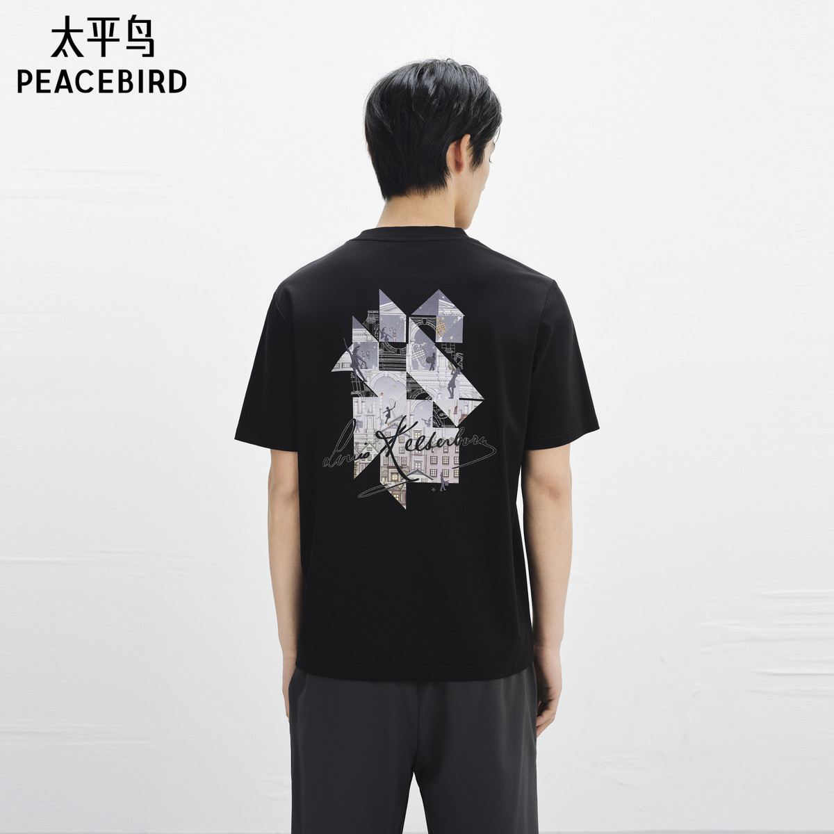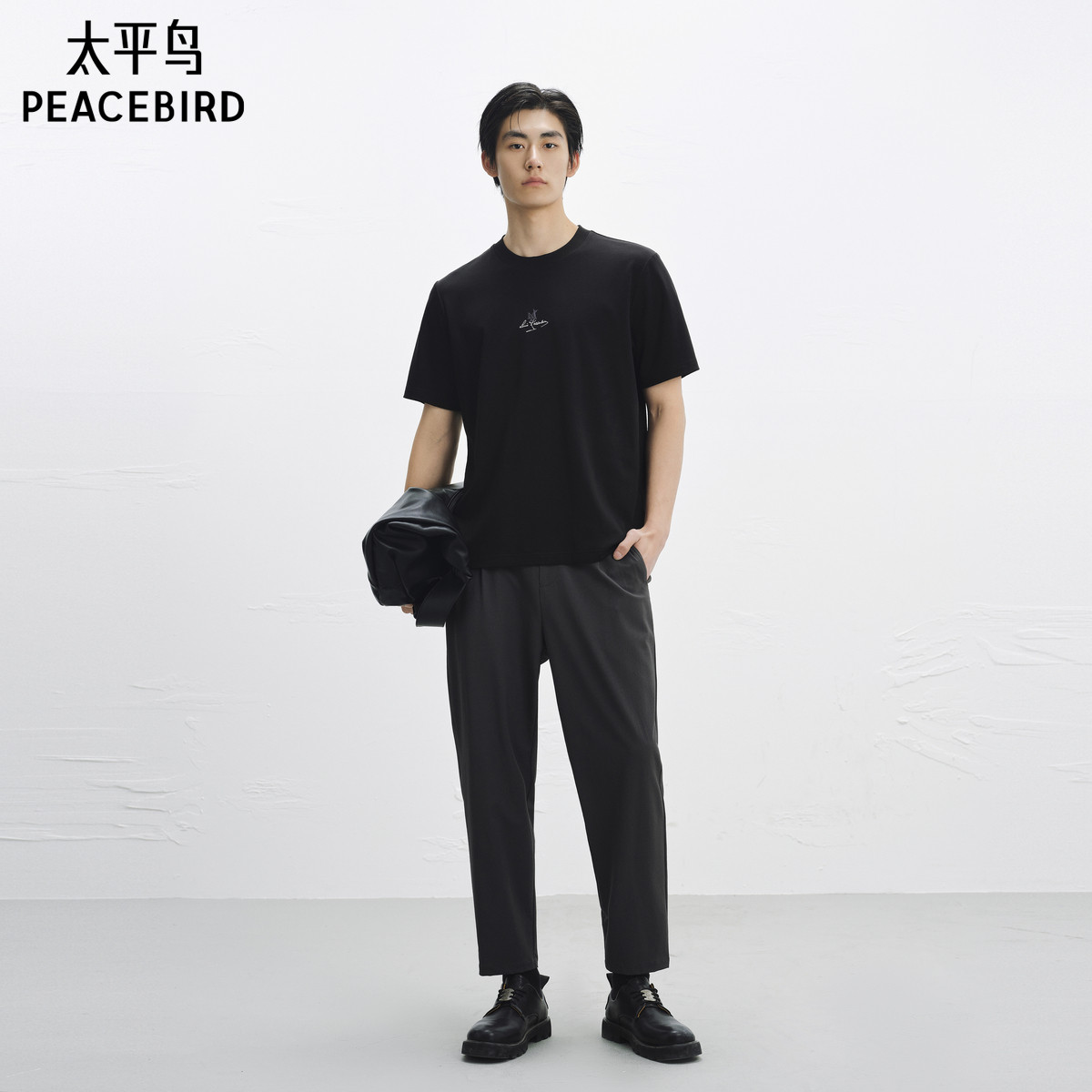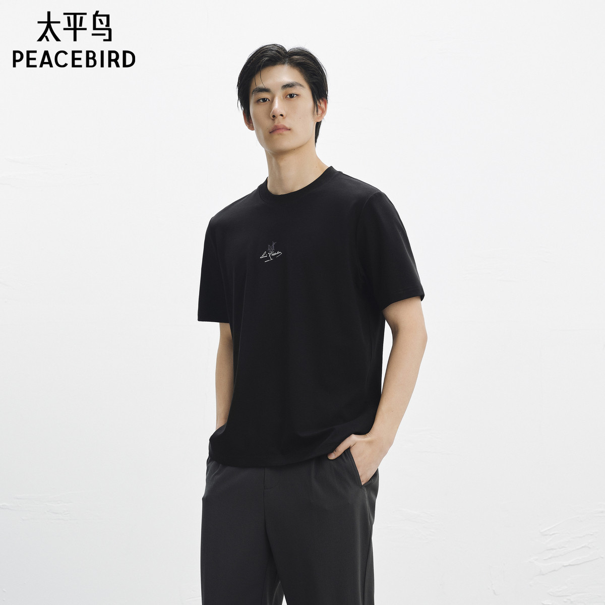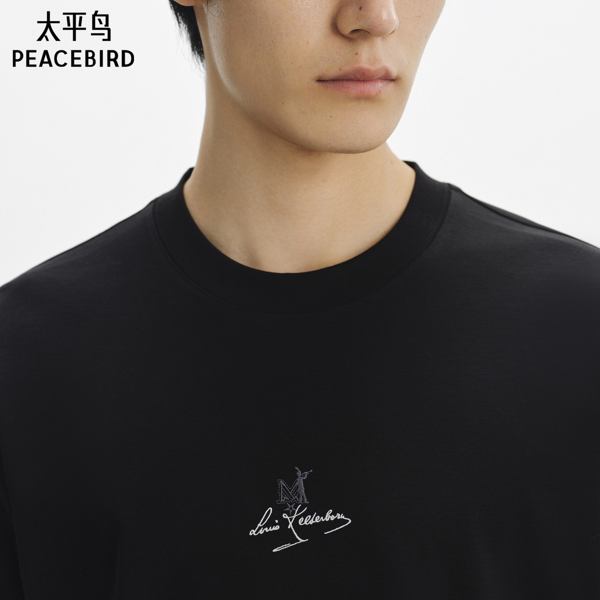 太平鸟男装 Daria Song联名系列刺绣T恤夏圆领短袖体恤衫男