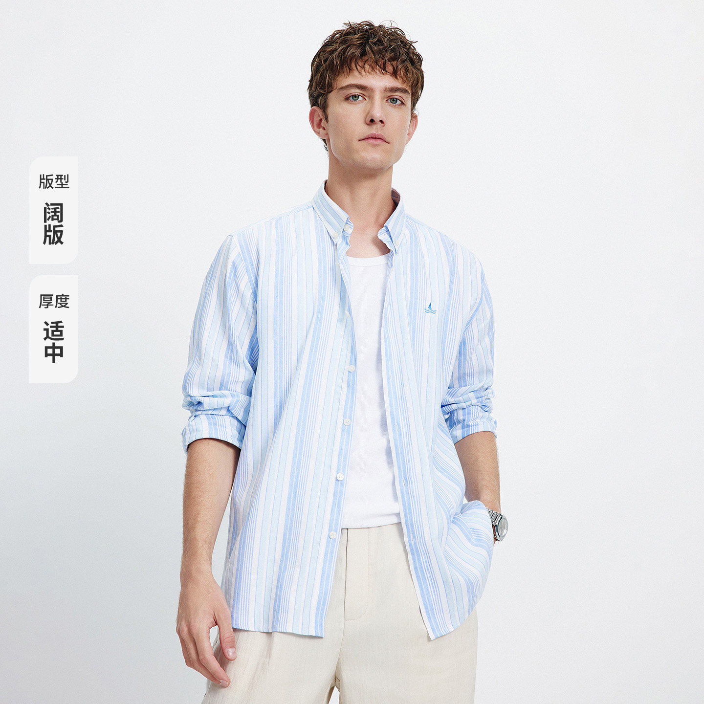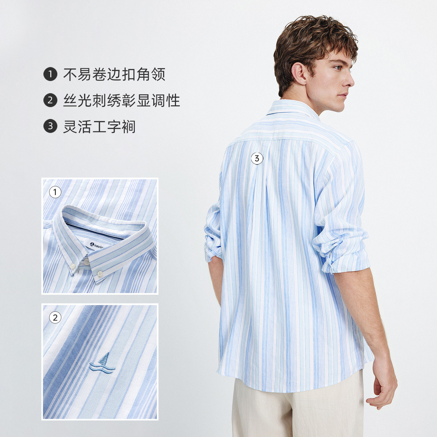 Navigare意大利小帆船阔版亚麻衬衫男长袖2026春季条纹休闲衬衣