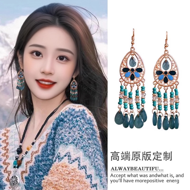 波西米亚风耳环女民族风耳饰度假风耳钉新疆西藏云南异域流苏配饰