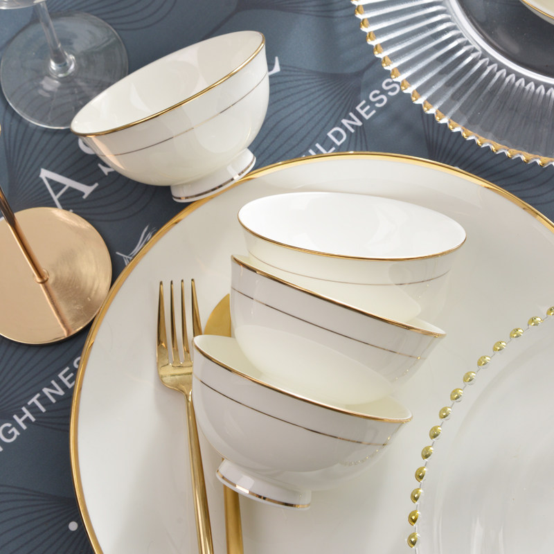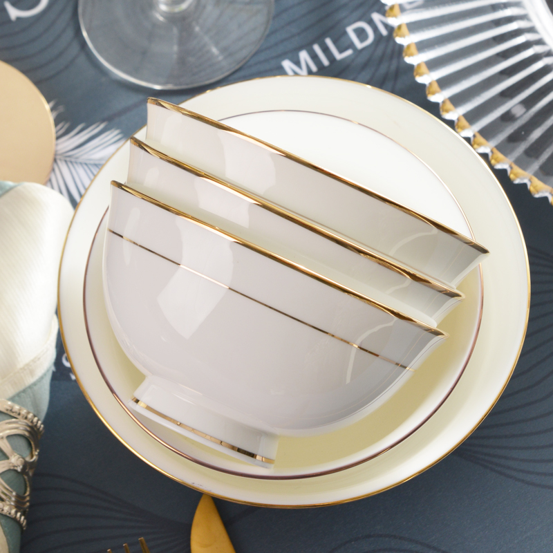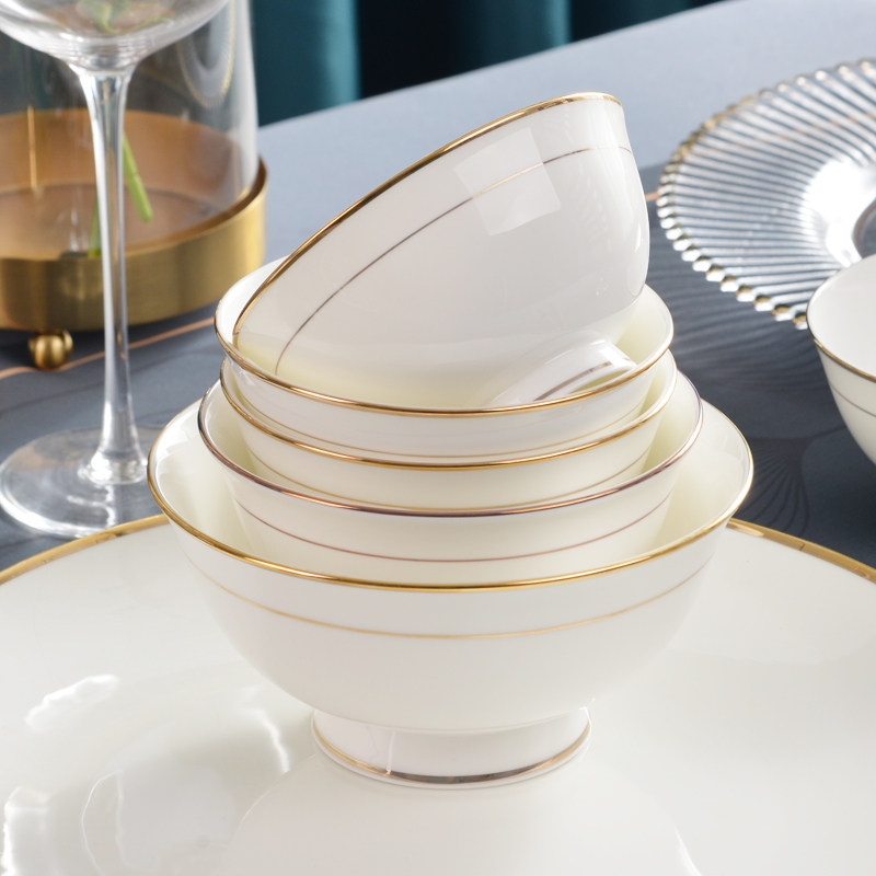 骨瓷饭碗10只装金边陶瓷碗高脚碗英寸高级感家用2025新款面碗汤碗