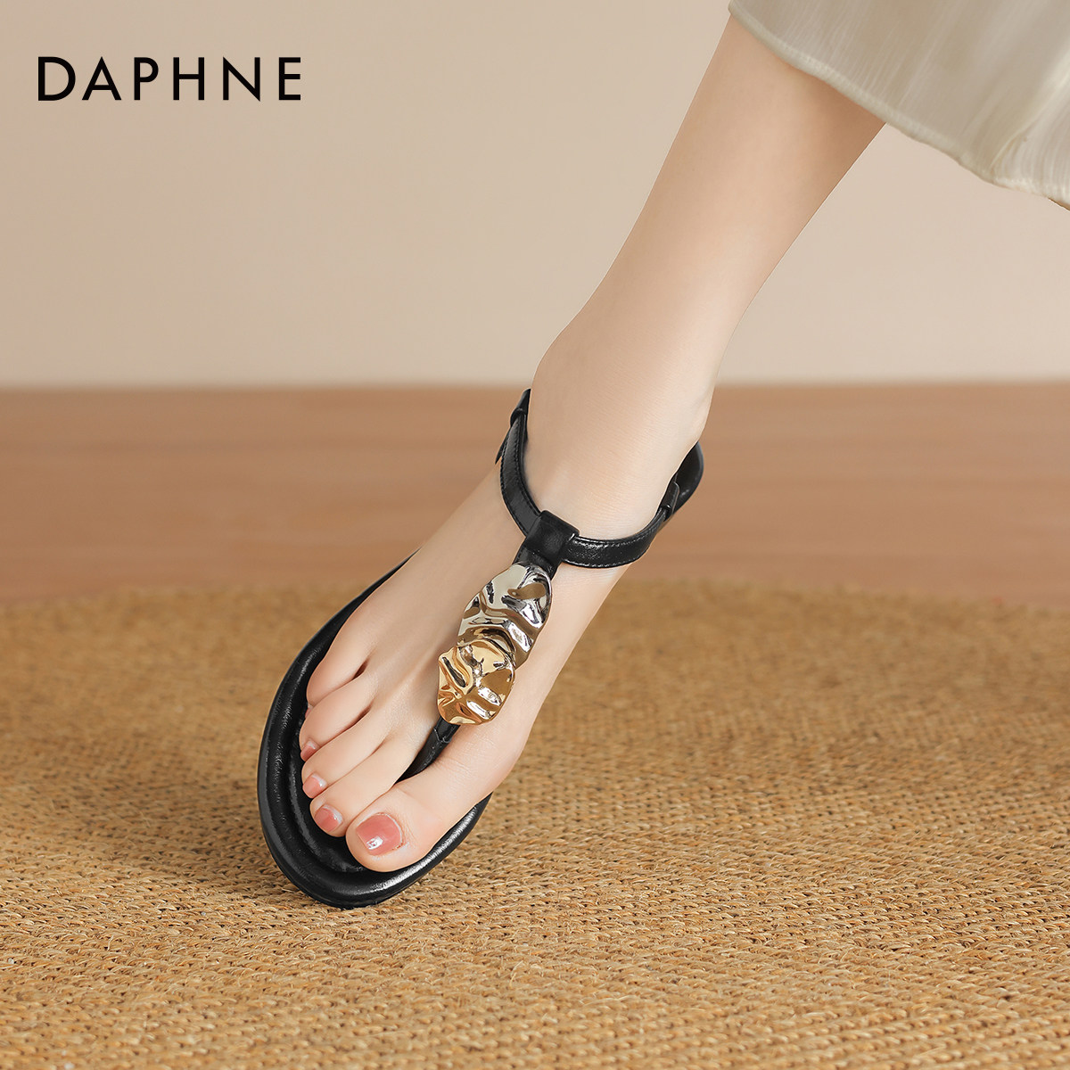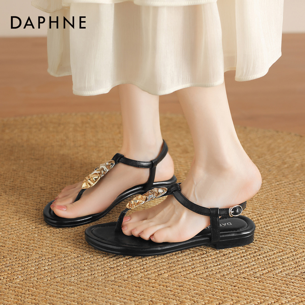 达芙妮夹趾凉鞋女夏季2026新款法式平底鞋罗马沙滩鞋外穿人字拖