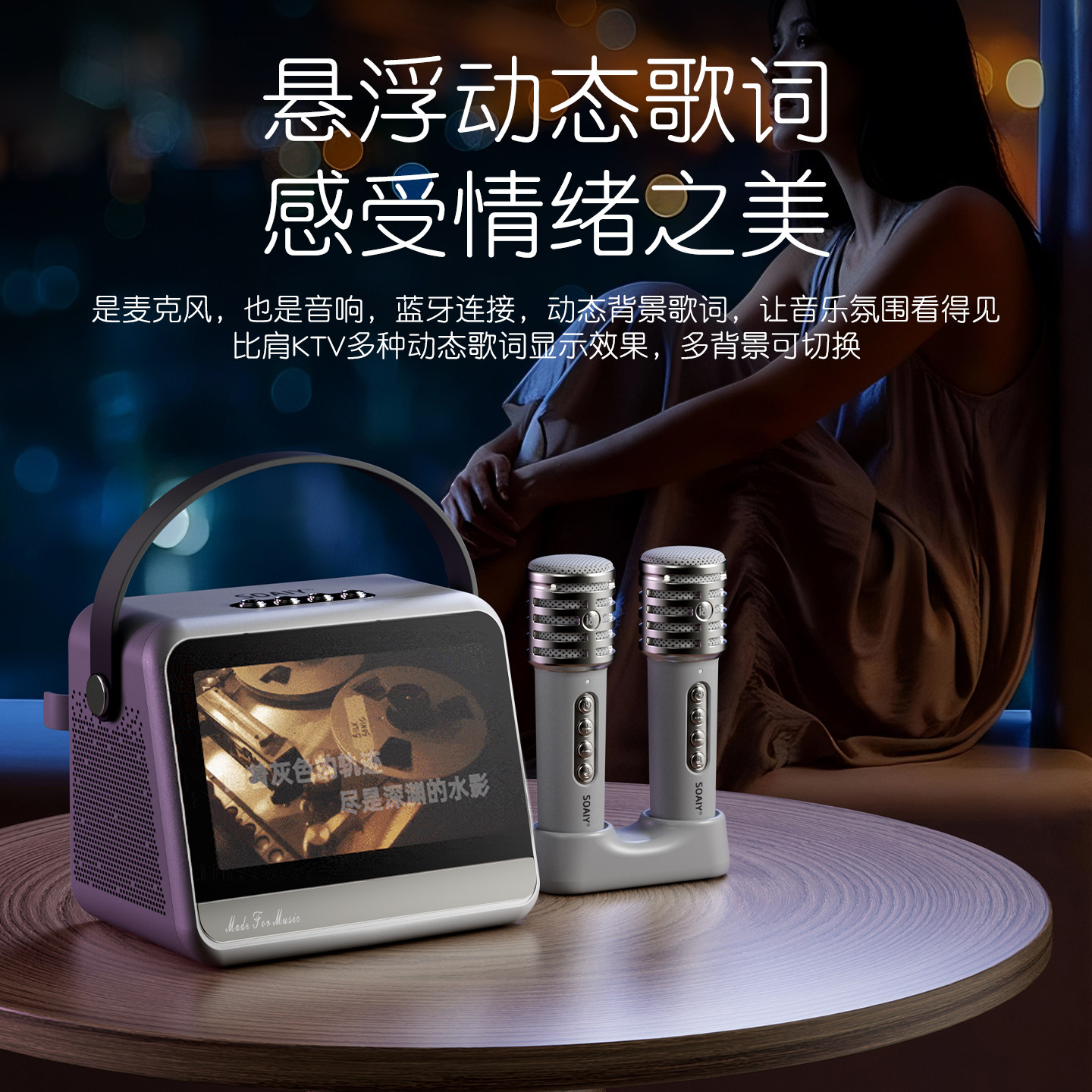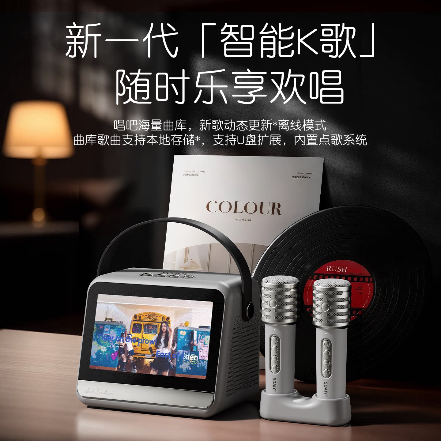 索爱V8家庭ktv音响点歌机麦克风一体话筒卡拉ok唱歌机智能k歌音箱