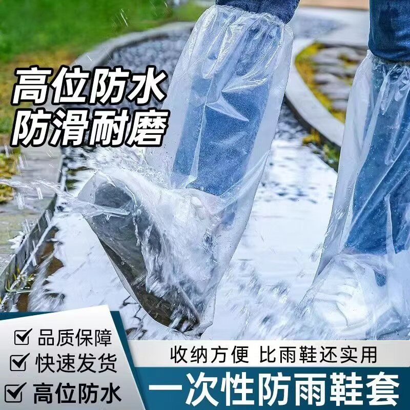 一次性雨鞋鞋套下雨天防水防滑透明塑料加厚耐磨脚套防雨高筒长筒