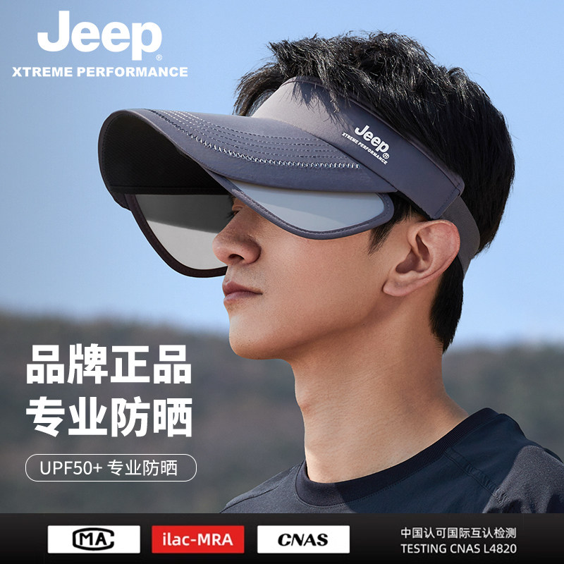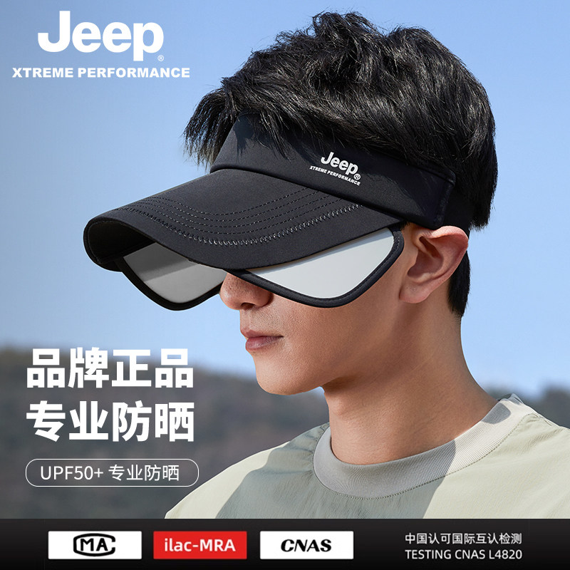 jeep吉普空顶帽夏季男款遮阳防晒户外骑车遮脸拉板男大檐帽太阳帽