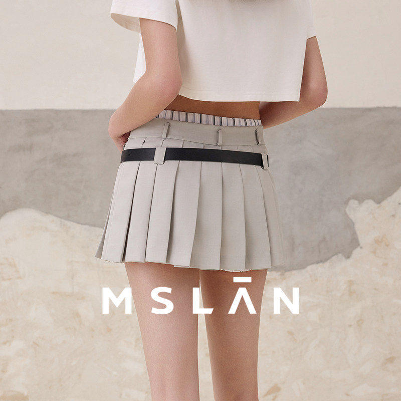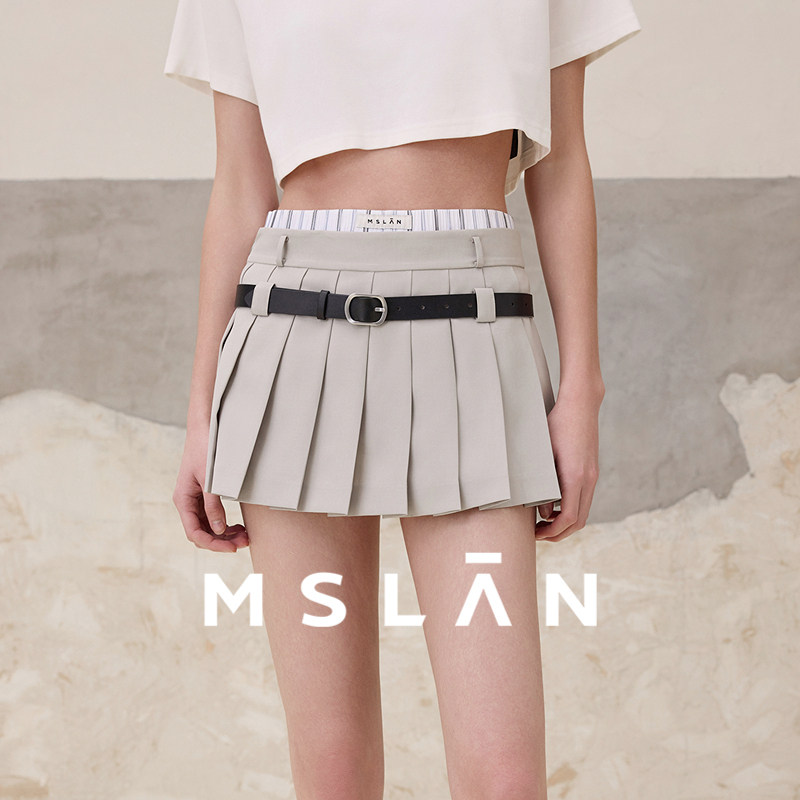MSLAN优雅心动 甜辣低腰裤裙含打底裤灰色百褶裙