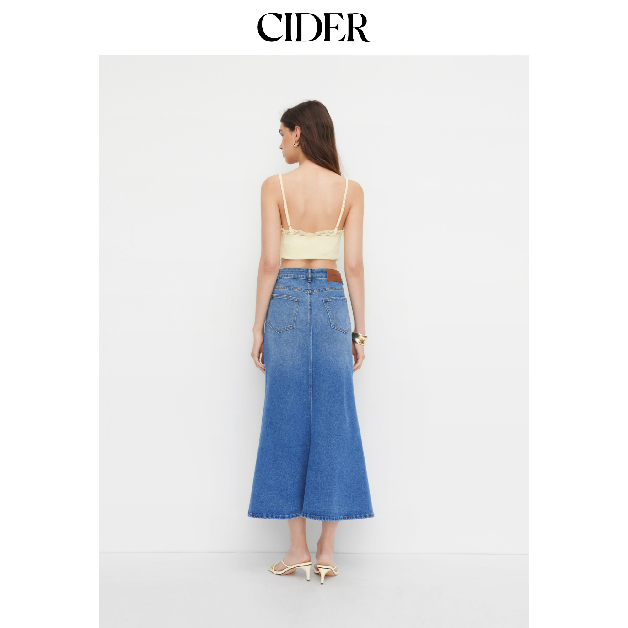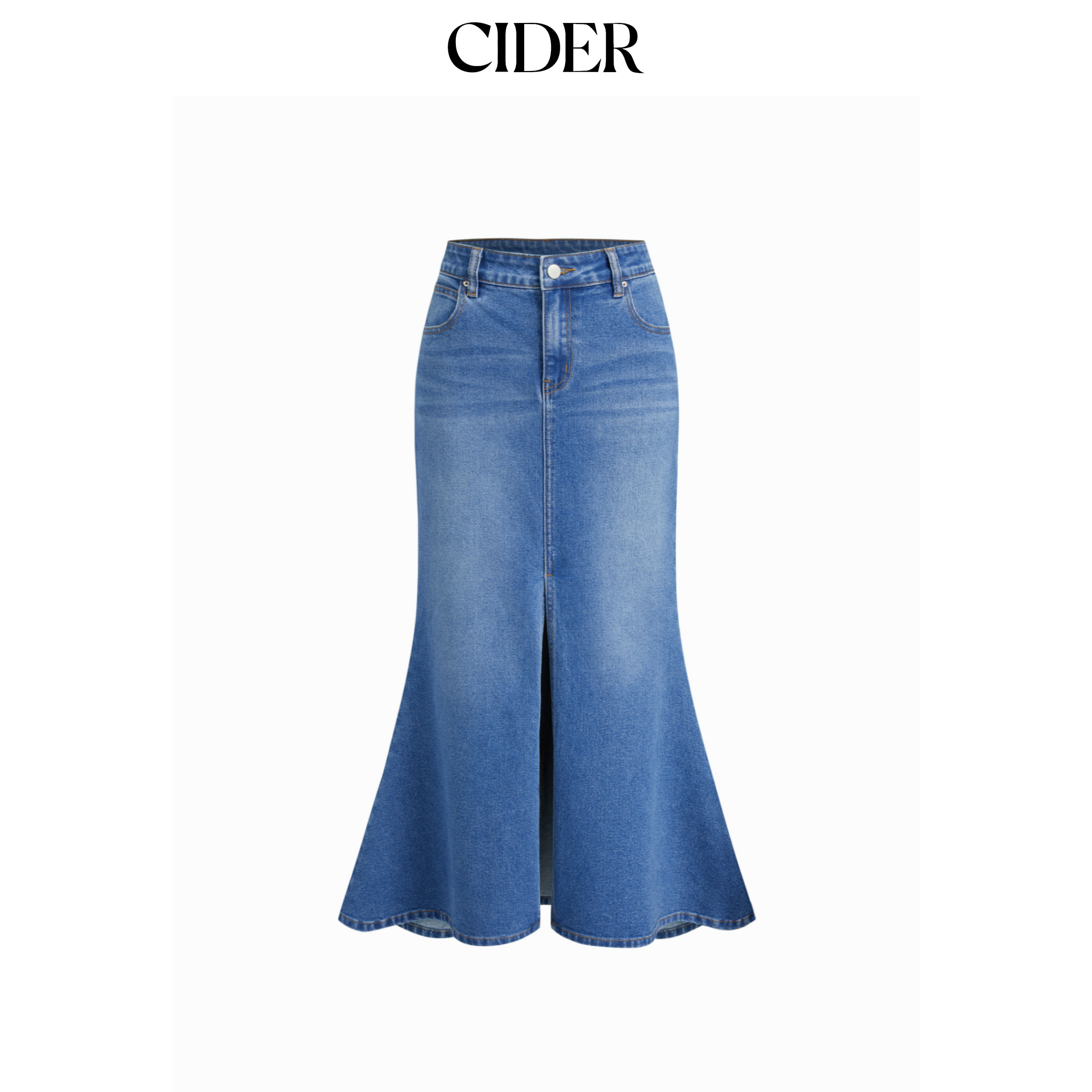 CIDER 弹力低腰开叉鱼尾长款牛仔半身裙 女装114684302