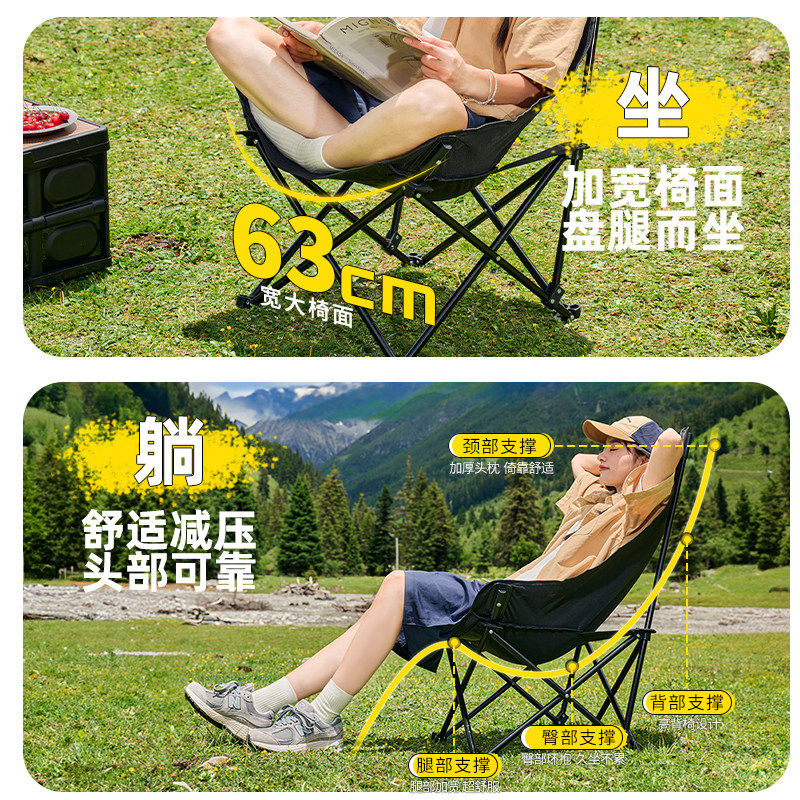 月亮椅露营椅子高靠背户外折叠椅便携式躺椅钓鱼凳沙滩椅野餐桌椅