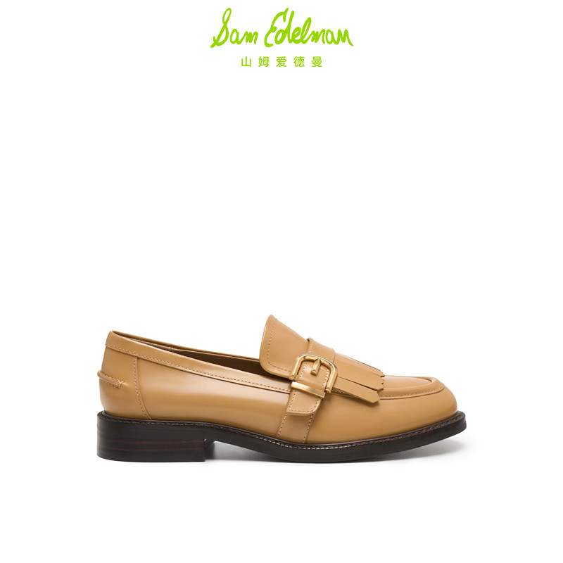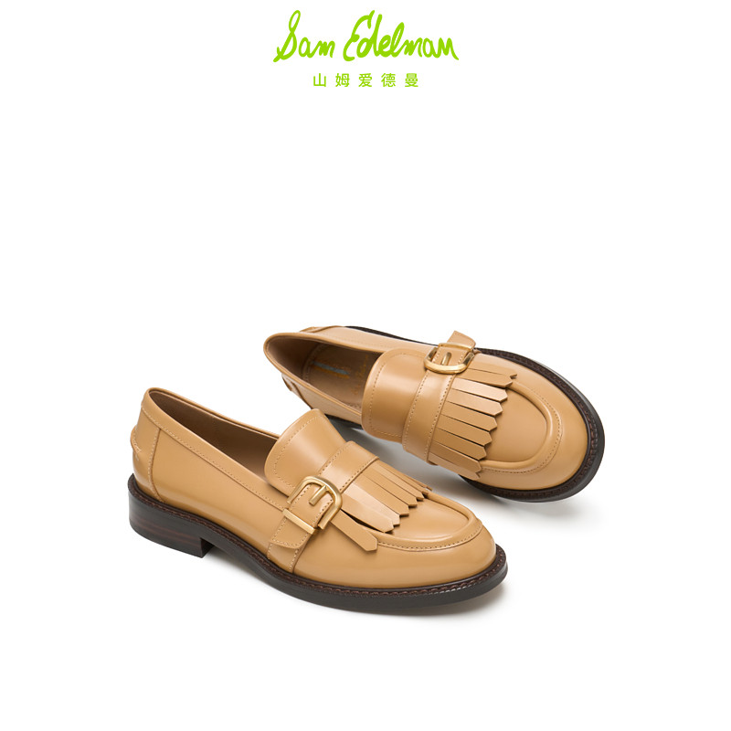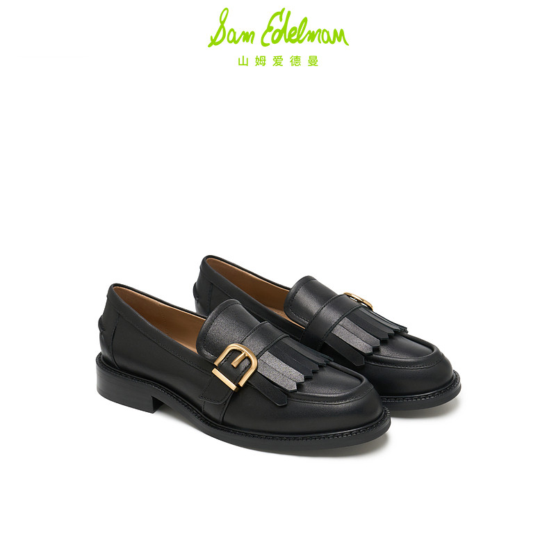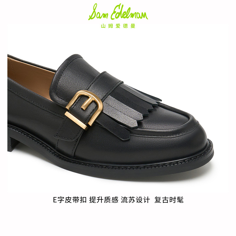 SAM EDELMAN山姆爱德曼春黑色粗跟流苏乐福鞋牛皮单鞋女COOPER