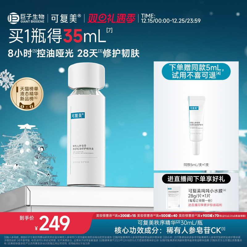可复美秩序精华稀有人参皂苷致研控油修护舒缓保湿精华液30mL/瓶