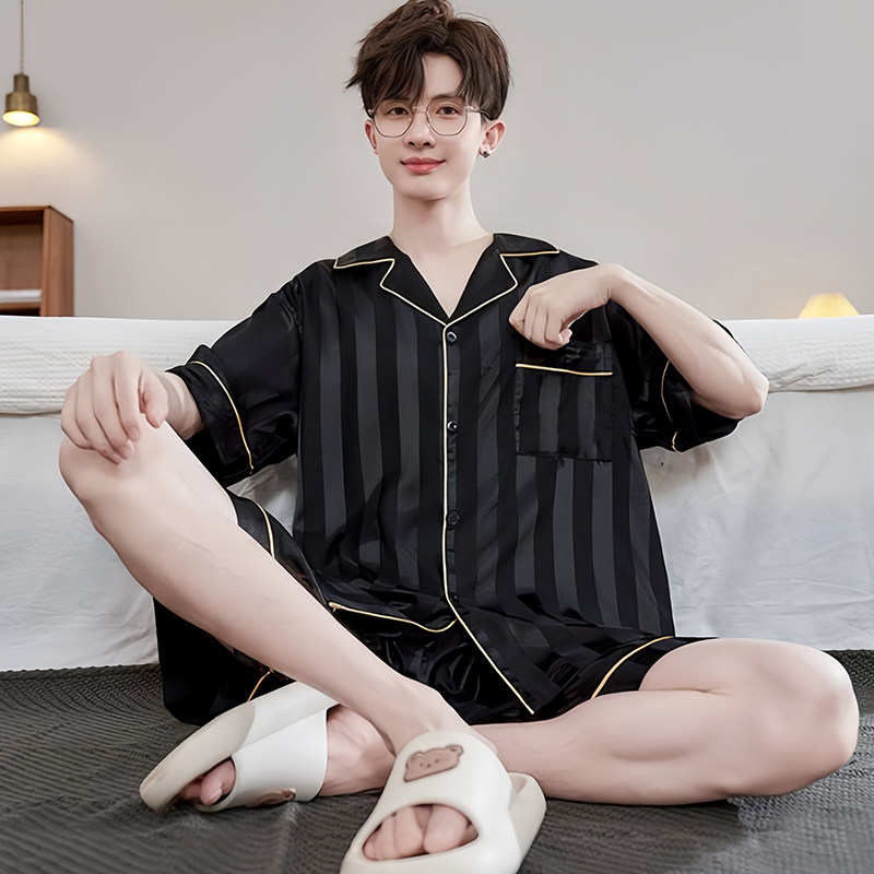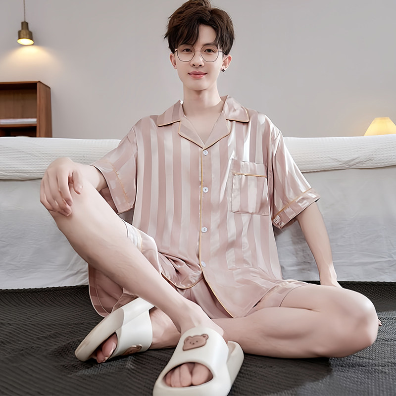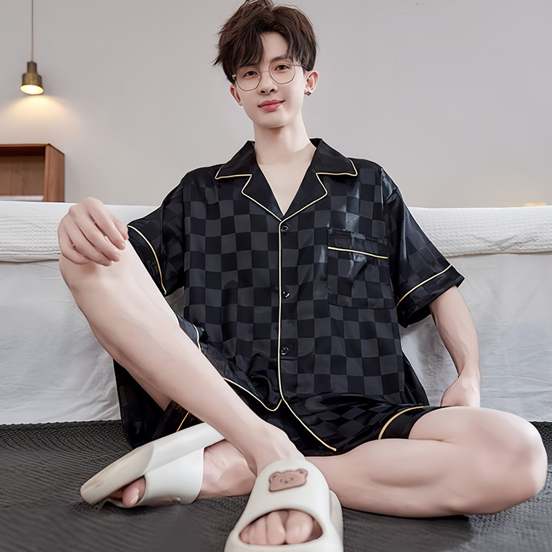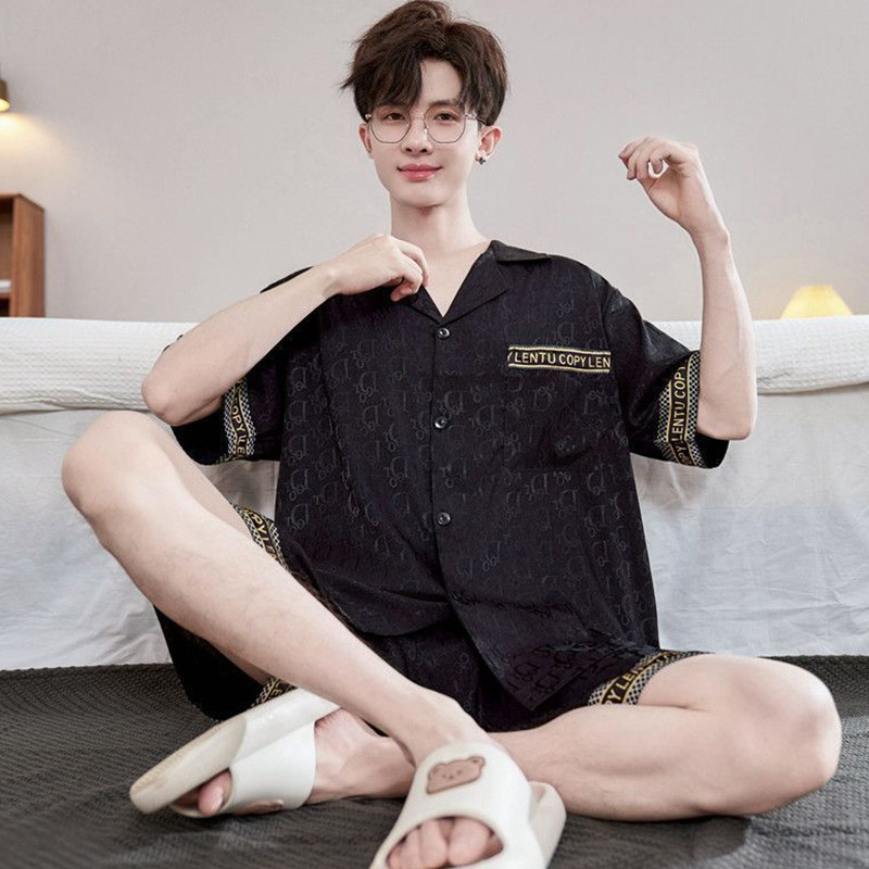 2026年新款冰丝短袖睡衣男夏季薄款青少年男士凉感夏天家居服套装