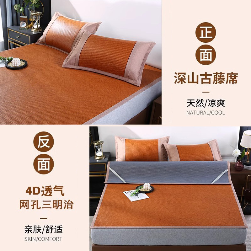 双面藤席凉席冰丝席家用折叠天然软席子冬夏两用学生宿舍草席竹席