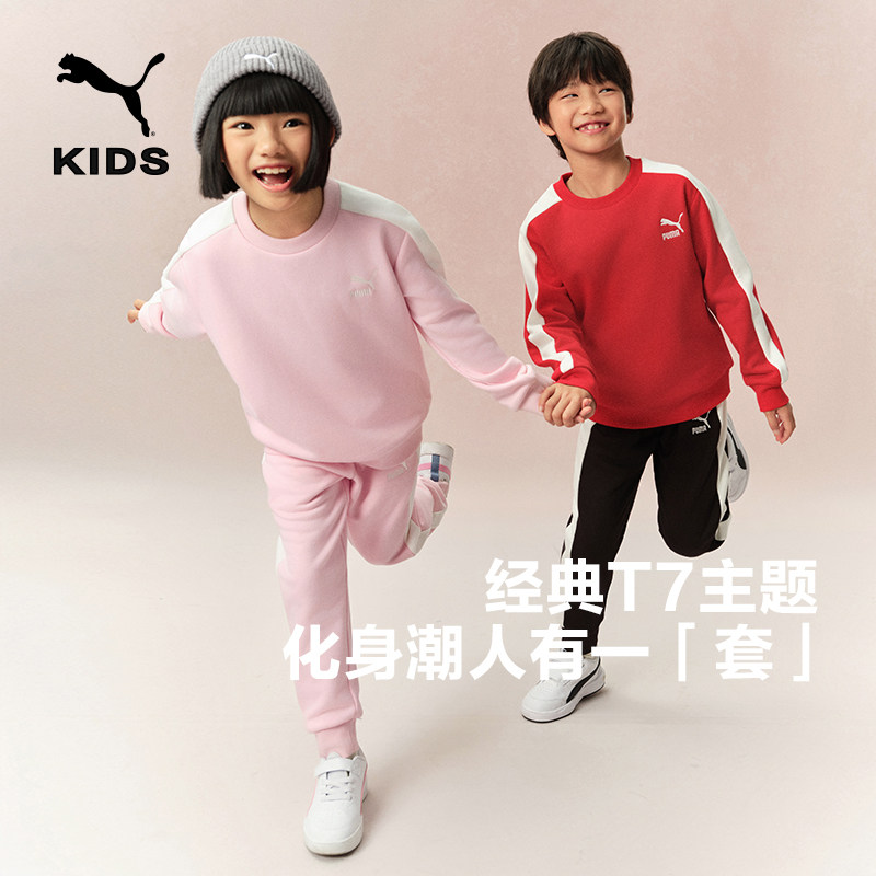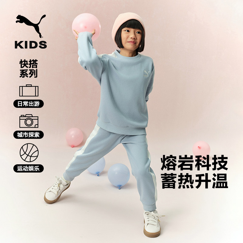 PUMA彪马童装冬季新款儿童卫衣套装保暖加绒长袖套装T7两件套